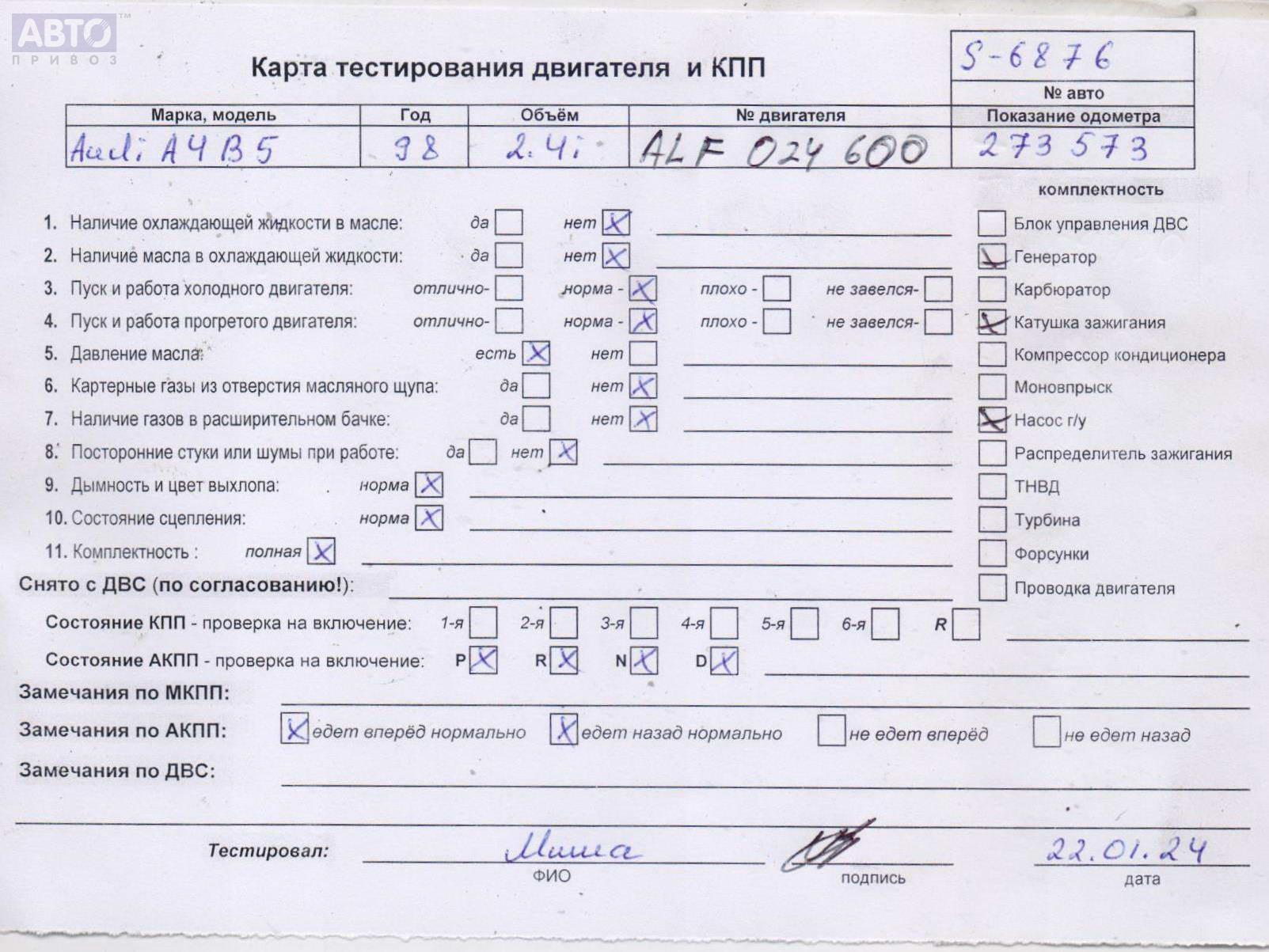 | Автомобиль / VIN: | S6876 WAUZZZ8DZWA152506 |