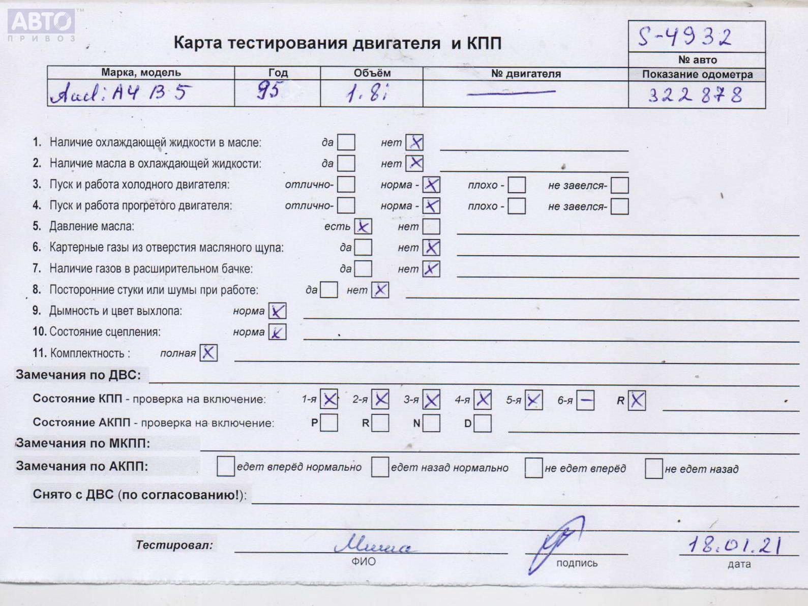 | Марка / Модель / Год: | Audi A4 B5 (1994-2001) 1995 |