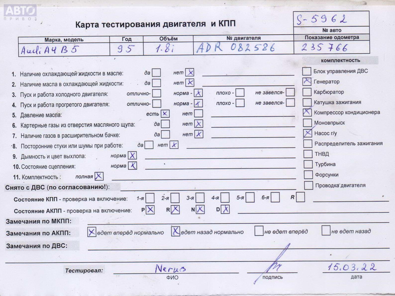| Марка / Модель / Год: | Audi A4 B5 (1994-2001) 1995 |