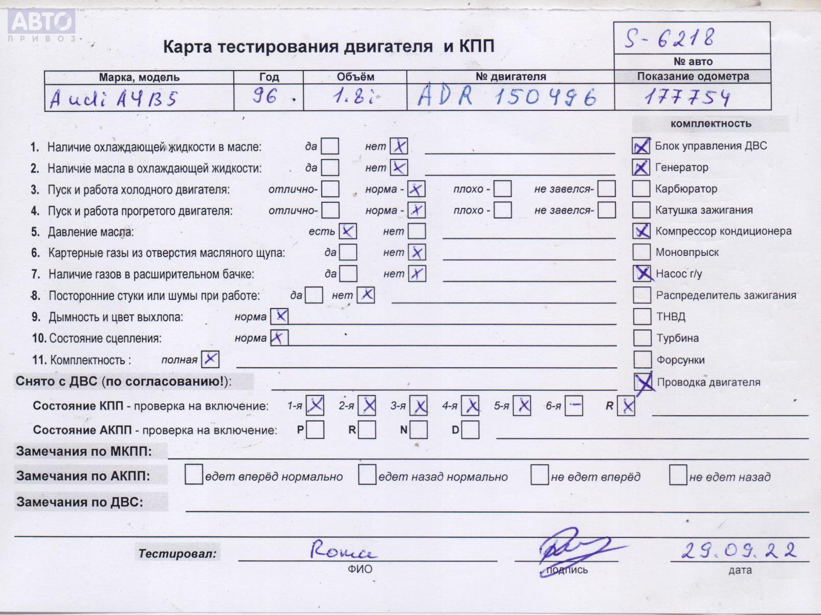 | Автомобиль / VIN: | S6218 WAUZZZ8DZTA258475 |