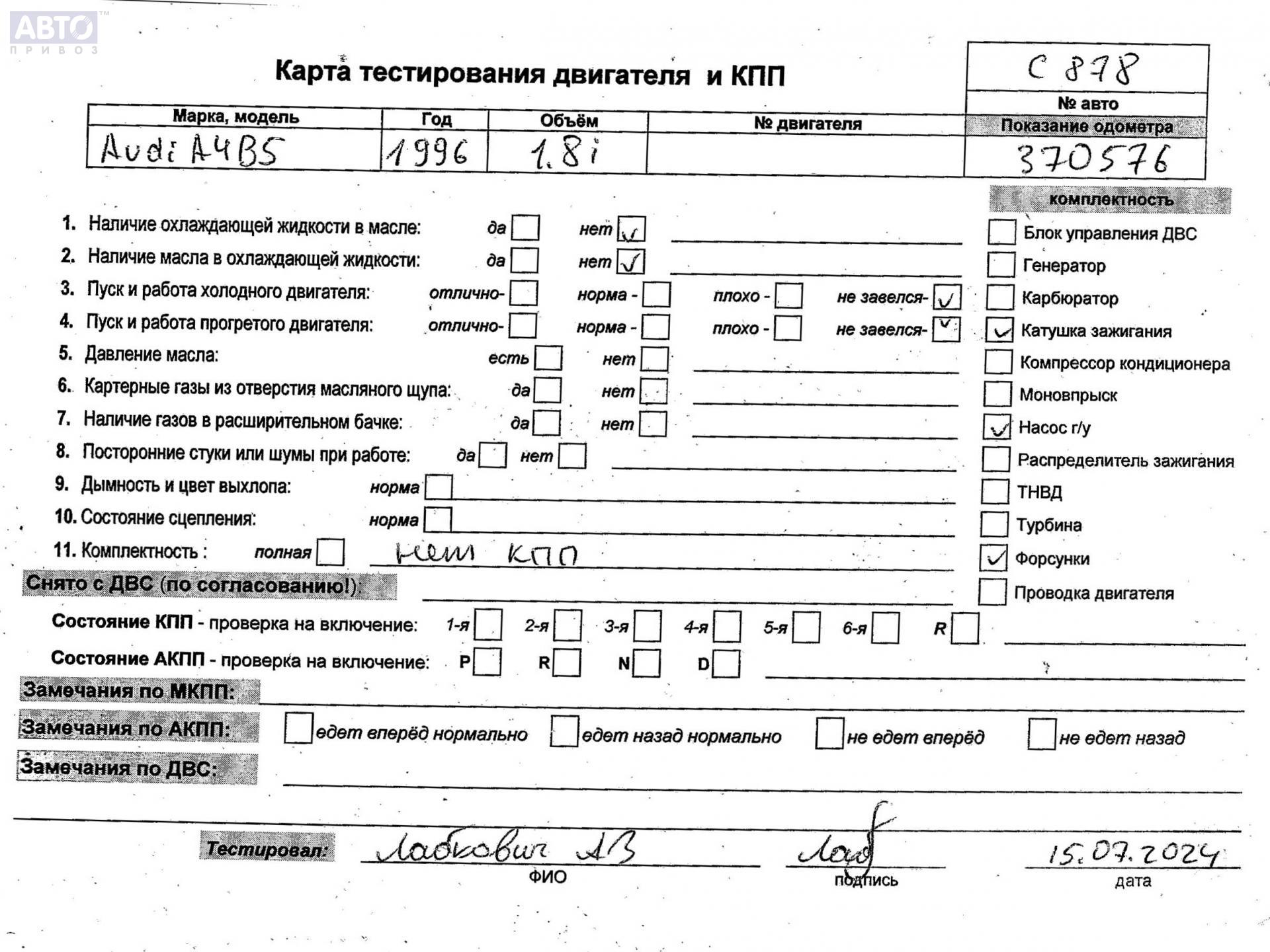 | Марка / Модель / Год: | Audi A4 B5 (1994-2001) 1996 |