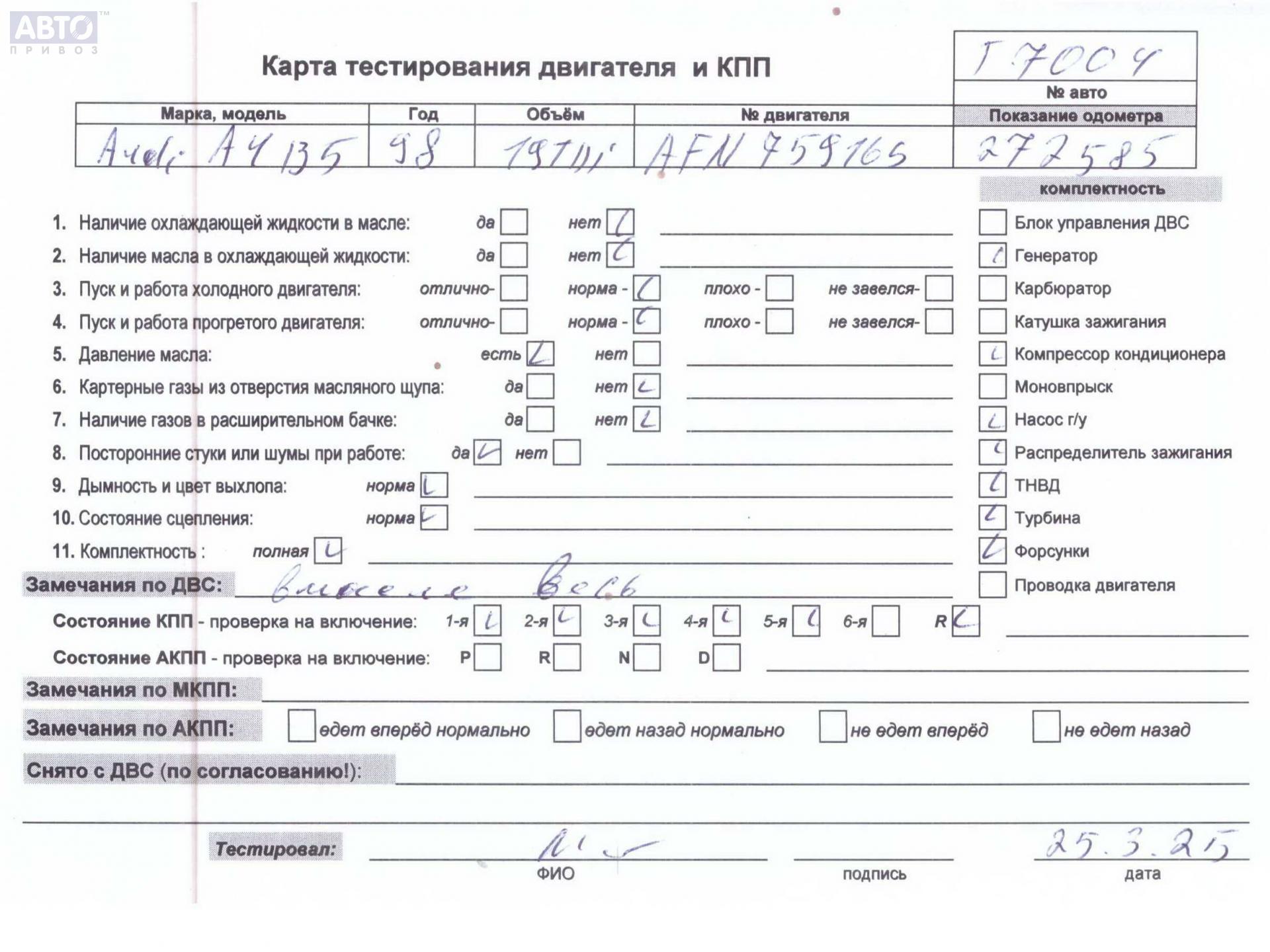 | Автомобиль / VIN: | T7004 WAUZZZ8DZXA203406 |