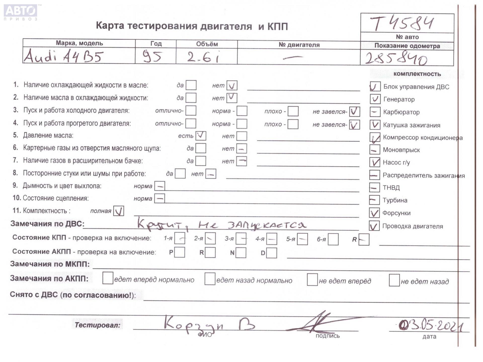 | Марка / Модель / Год: | Audi A4 B5 (1994-2001) 1995 |