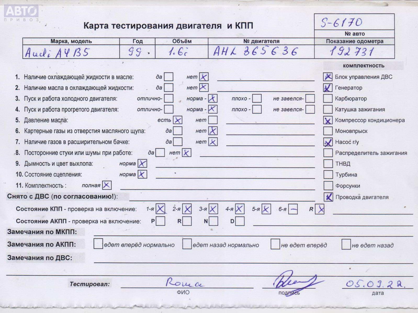 | Автомобиль / VIN: | S6170 WAUZZZ8DZXA259699 |