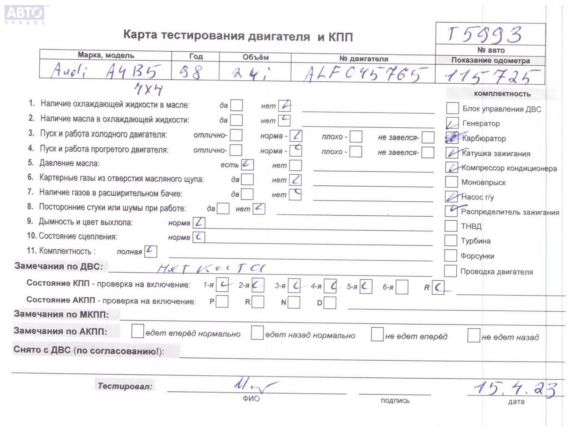 | Марка / Модель / Год: | Audi A4 B5 (1994-2001) 1998 |