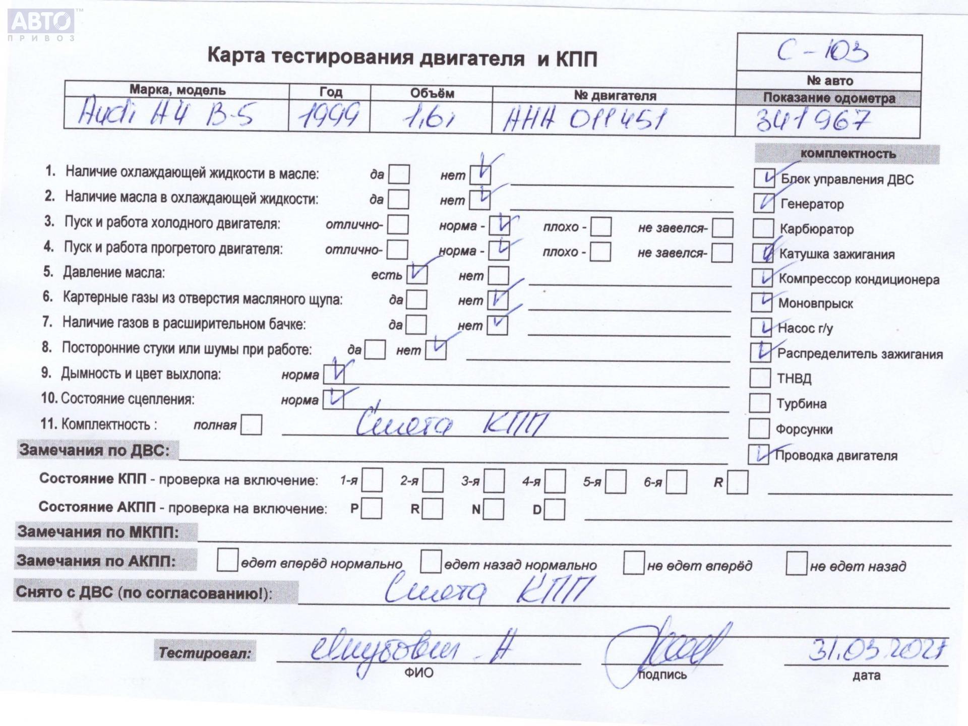| Автомобиль / VIN: | C0103 WAUZZZ8DZYA101482 |