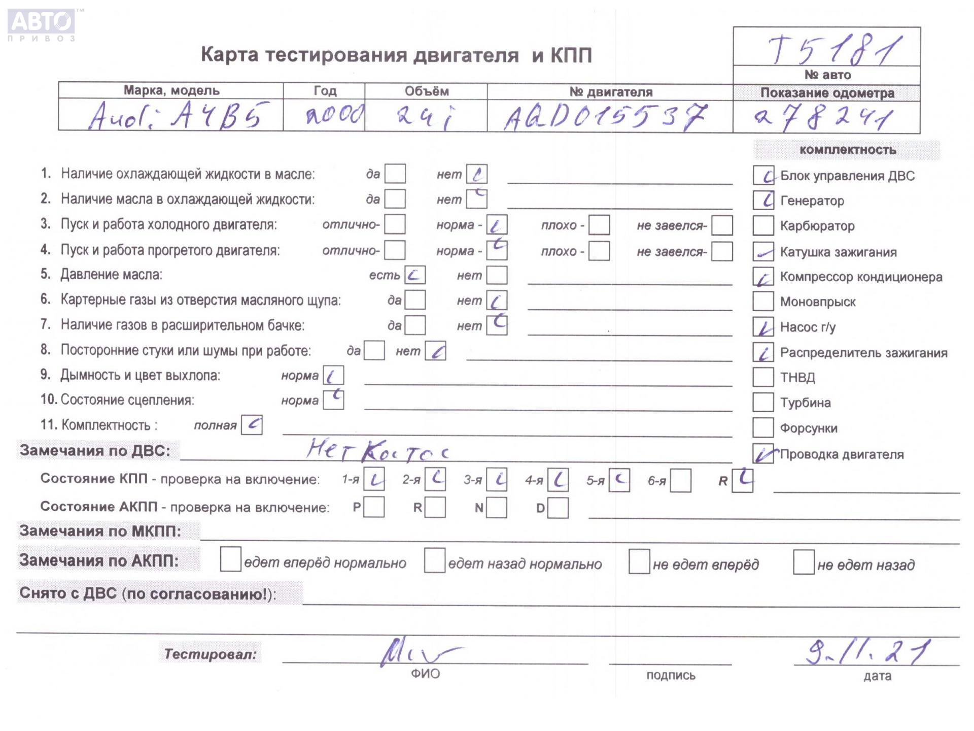 | Автомобиль / VIN: | T5181 WAUZZZ8DZYA171196 |