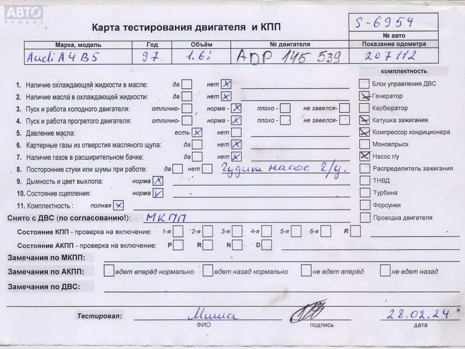 | Марка / Модель / Год: | Audi A4 B5 (1994-2001) 1997 |