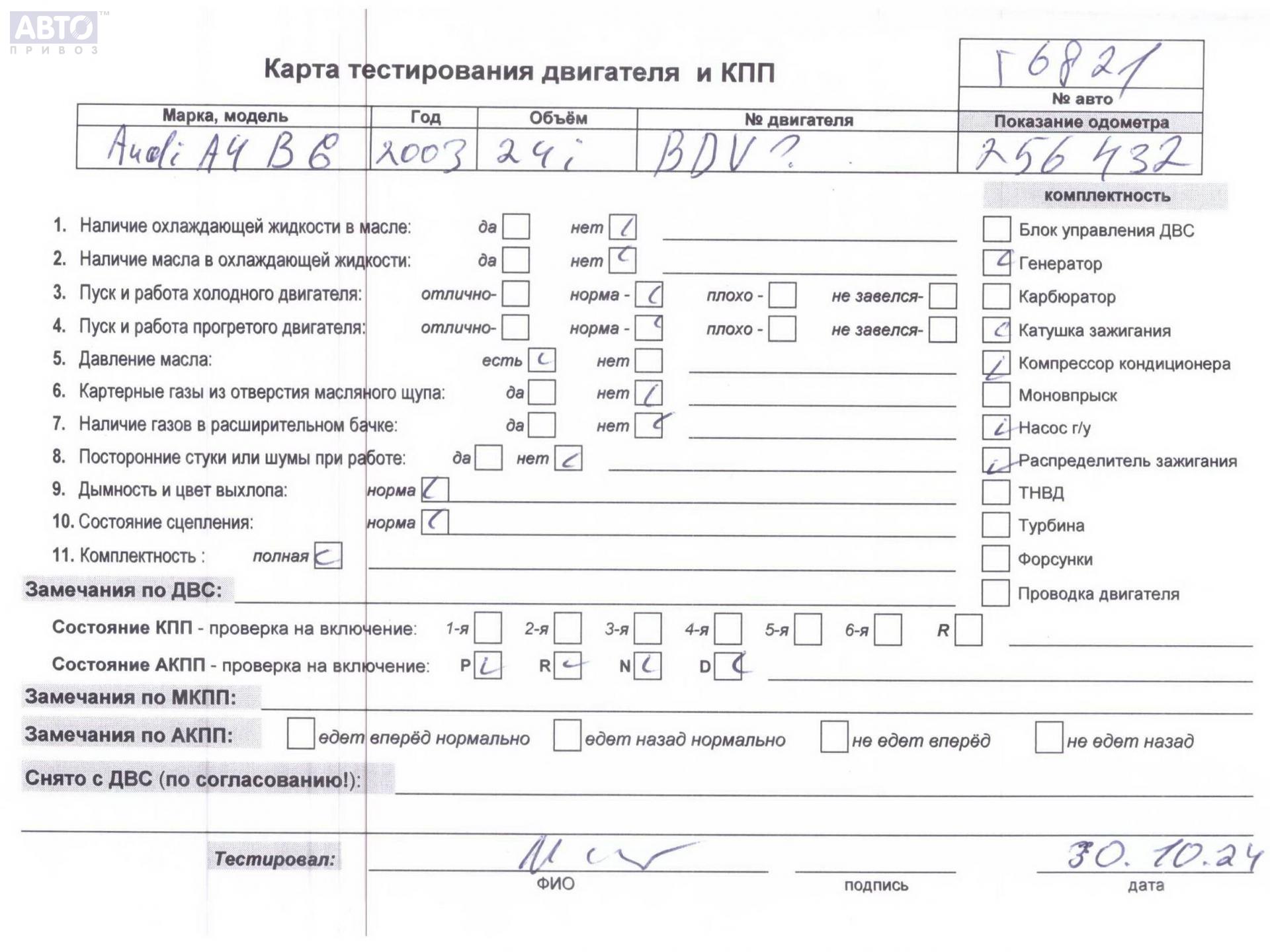 | Автомобиль / VIN: | T6821 WAUZZZ8E53A383026 |