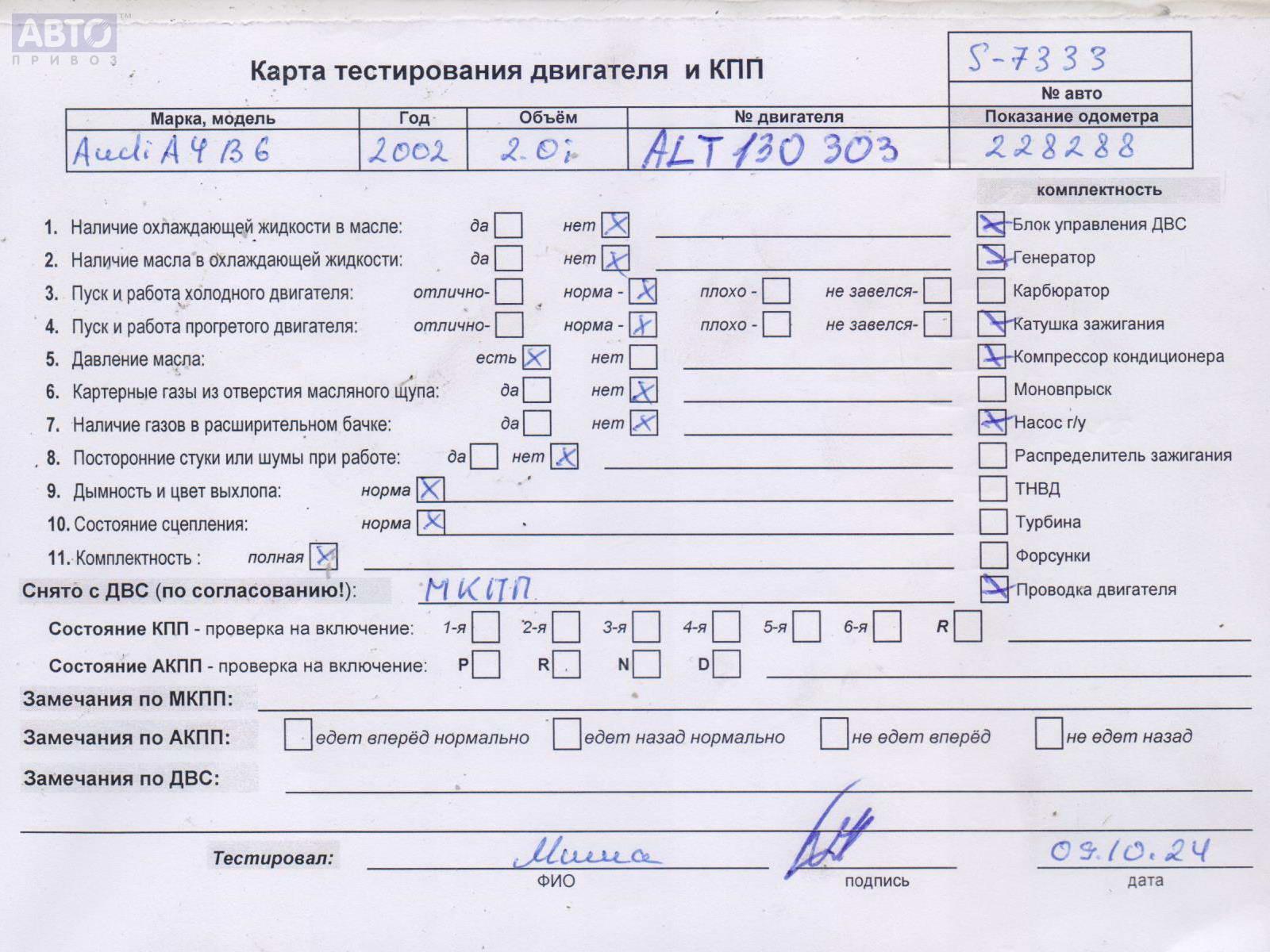 | Автомобиль / VIN: | S7333 WAUZZZ8E43A287131 |