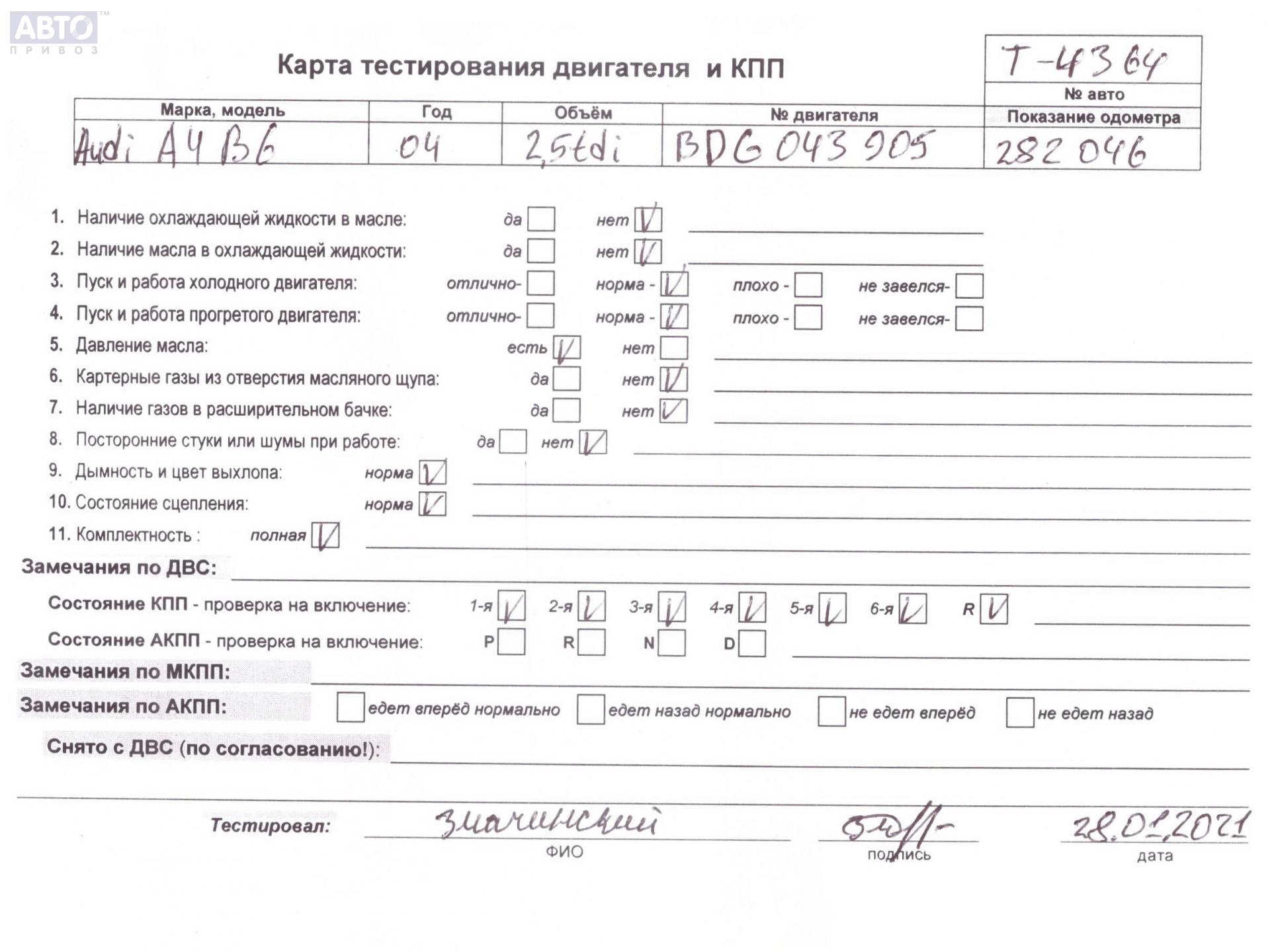 | Марка / Модель / Год: | Audi A4 B6 (2001-2004) 2004 |