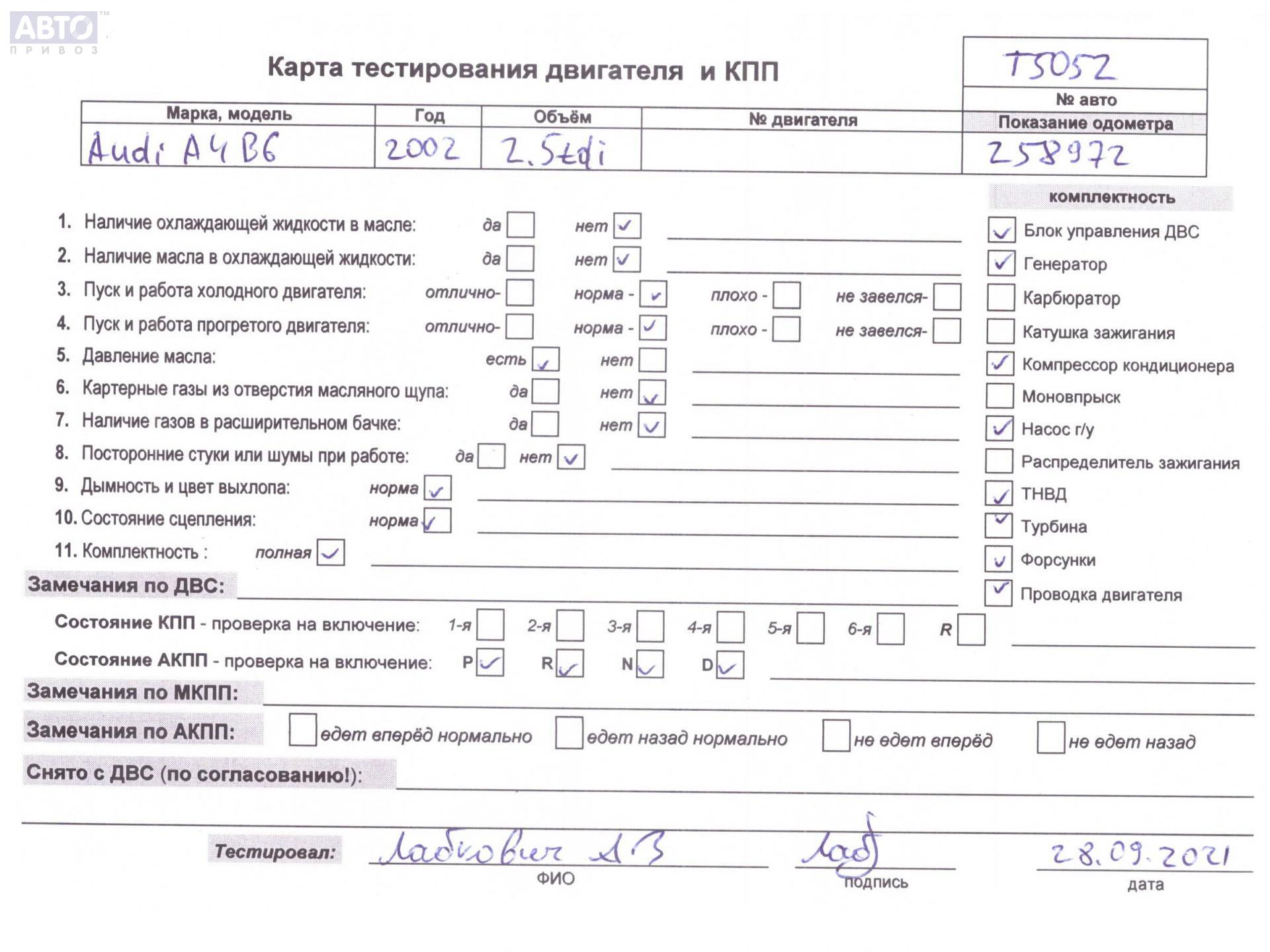 | Марка / Модель / Год: | Audi A4 B6 (2001-2004) 2002 |