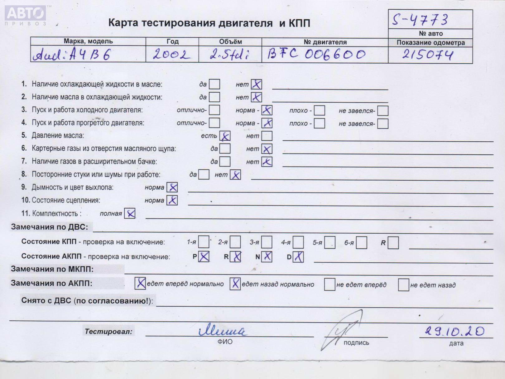 | Марка / Модель / Год: | Audi A4 B6 (2001-2004) 2002 |