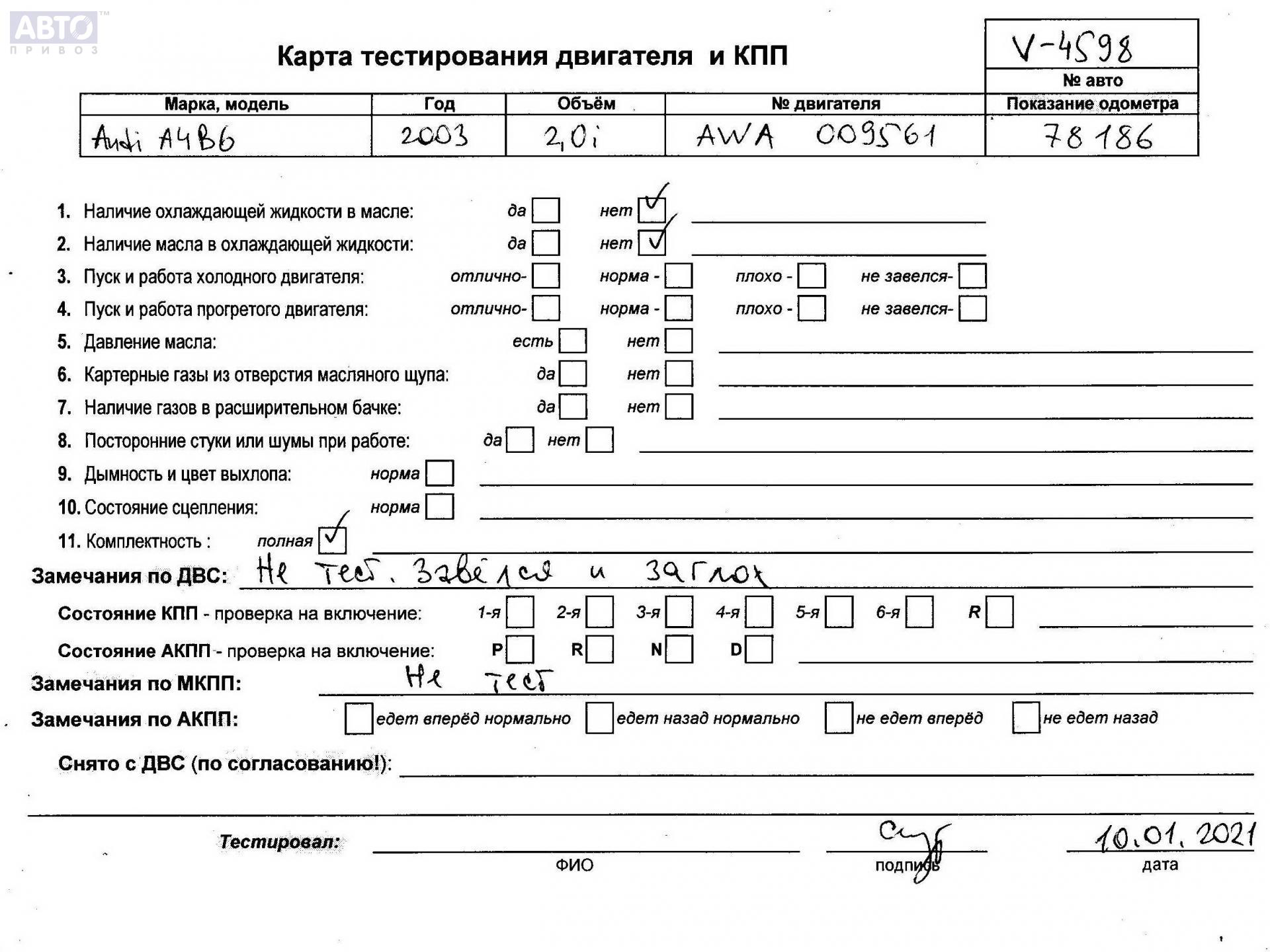 | Автомобиль / VIN: | V4598 WAUZZZ8E54A051895 |