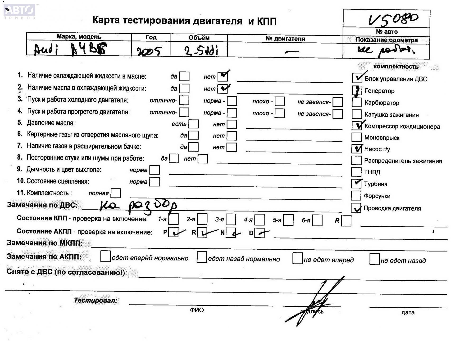 | Автомобиль / VIN: | V5080 WAUZZZ8H86K000821 |