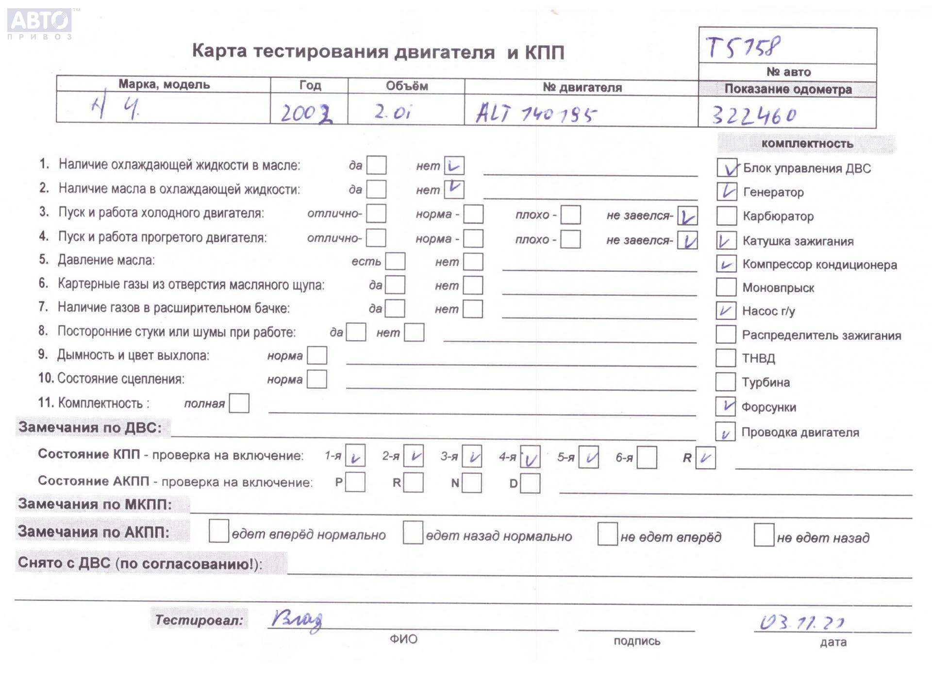 | Автомобиль / VIN: | T5158 WAUZZZ8E03A346126 |