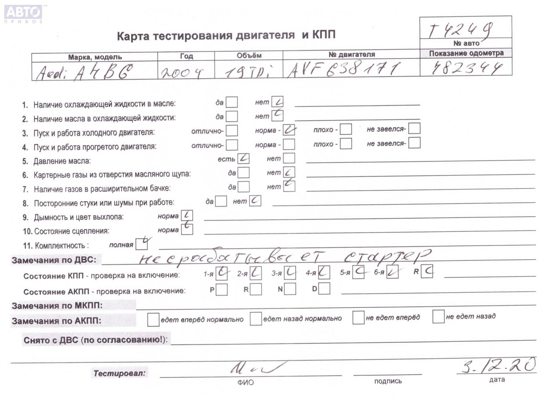 | Автомобиль / VIN: | T4249 WAUZZZ8E05A002153 |