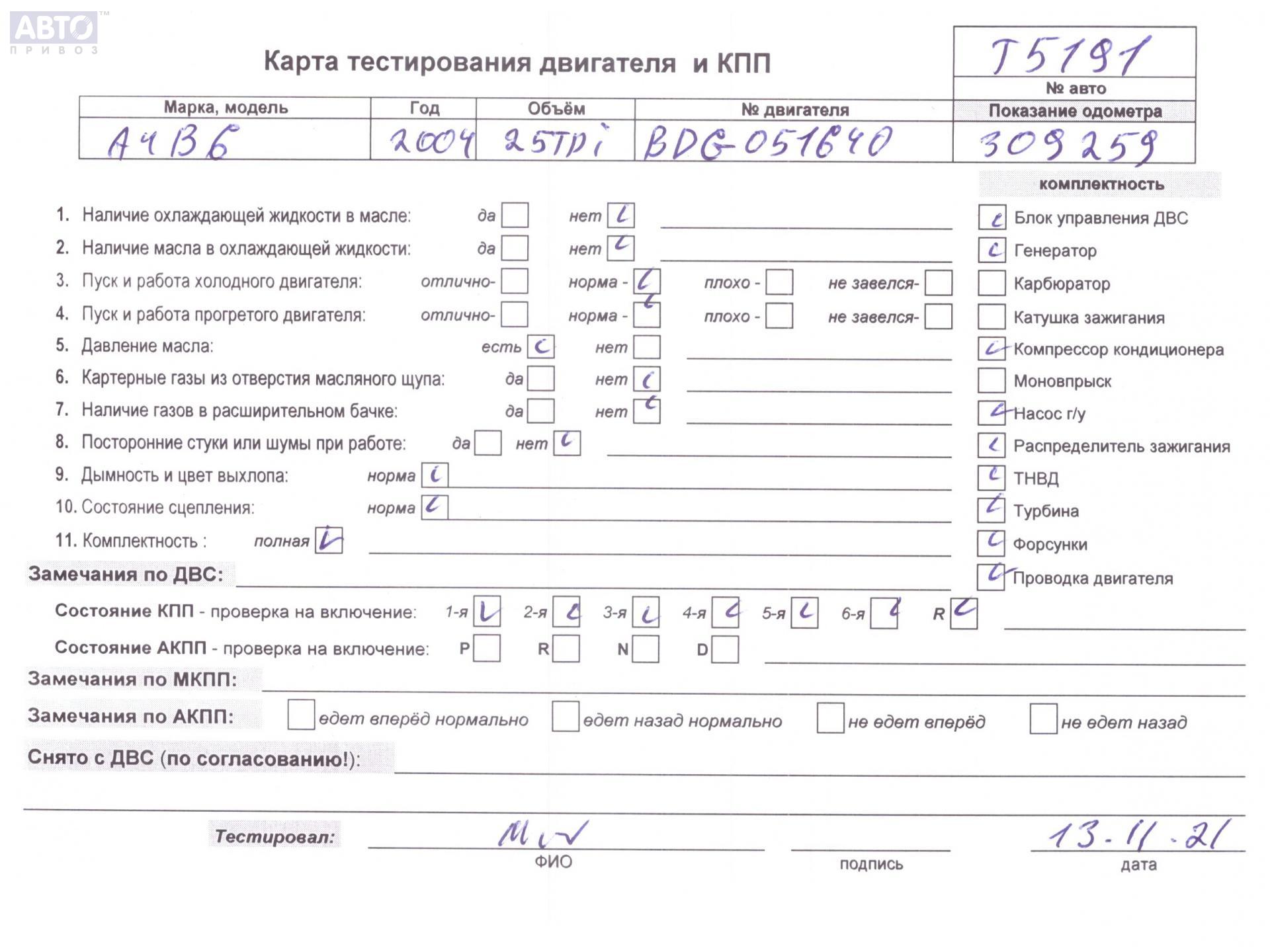 | Автомобиль / VIN: | T5191 WAUZZZ8E75A096323 |