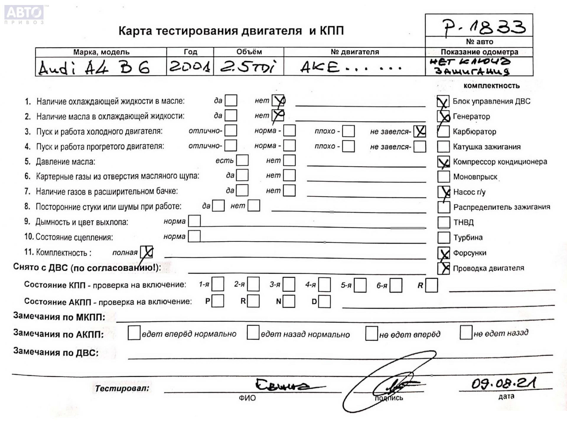 | Марка / Модель / Год: | Audi A4 B6 (2001-2004) 2001 |