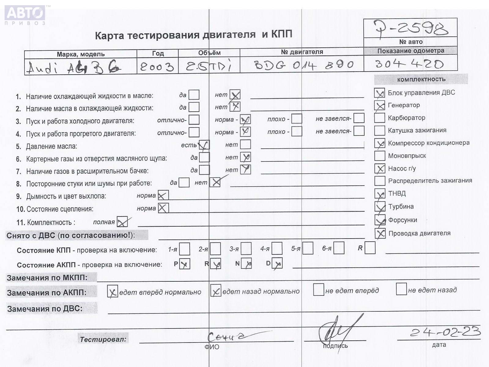 | Автомобиль / VIN: | P2598 WAUZZZ8E04A154139 |