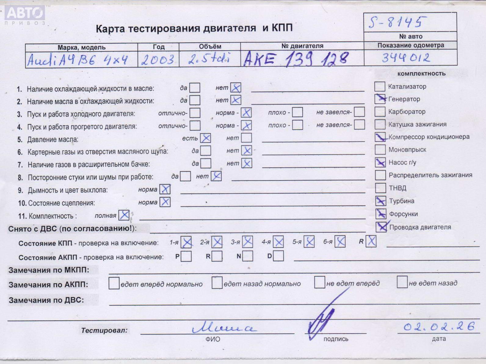 | Автомобиль / VIN: | S8145 WAUZZZ8E13A195653 |