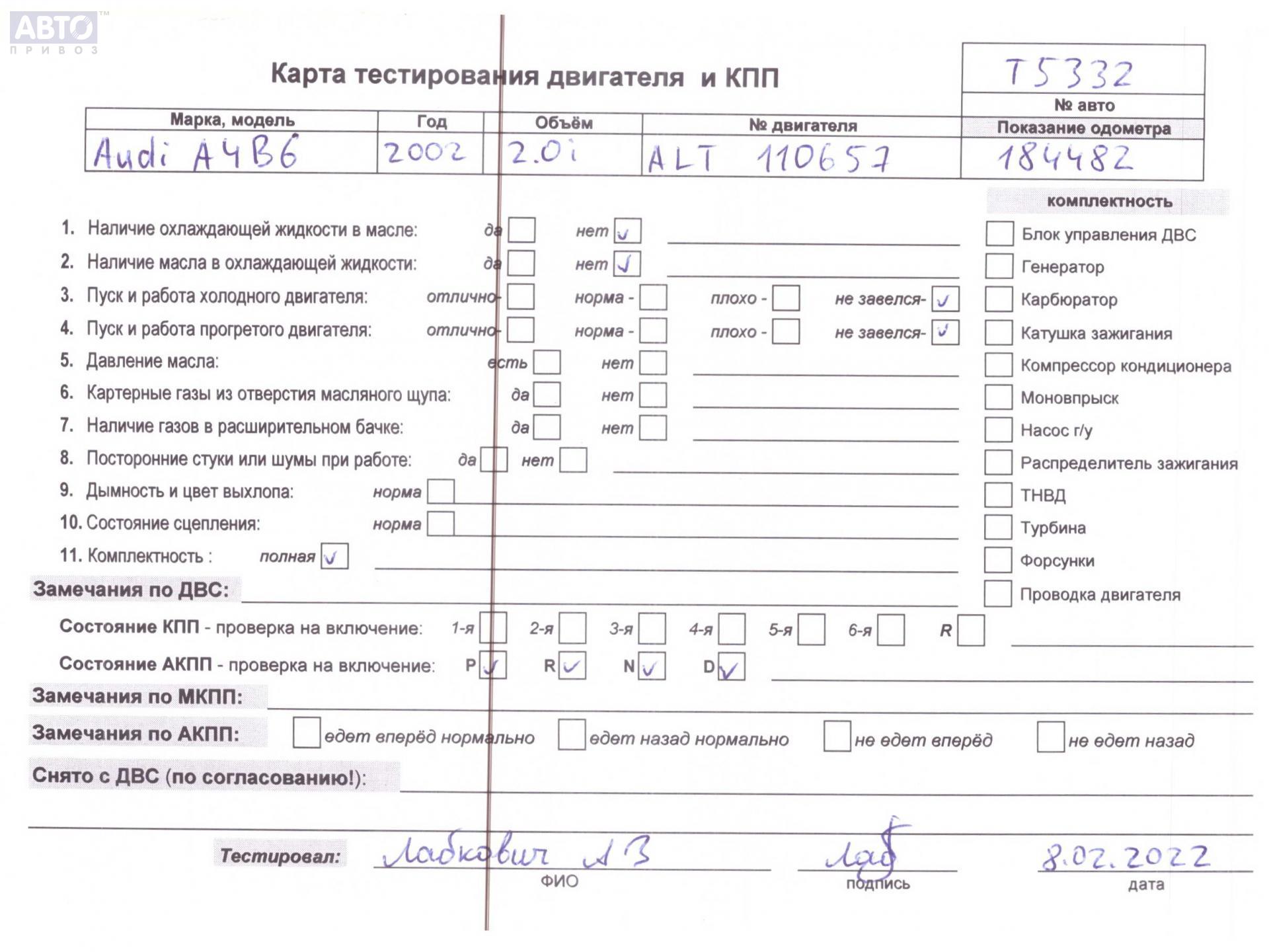 | Автомобиль / VIN: | T5332 WAUZZZ8E03A162630 |