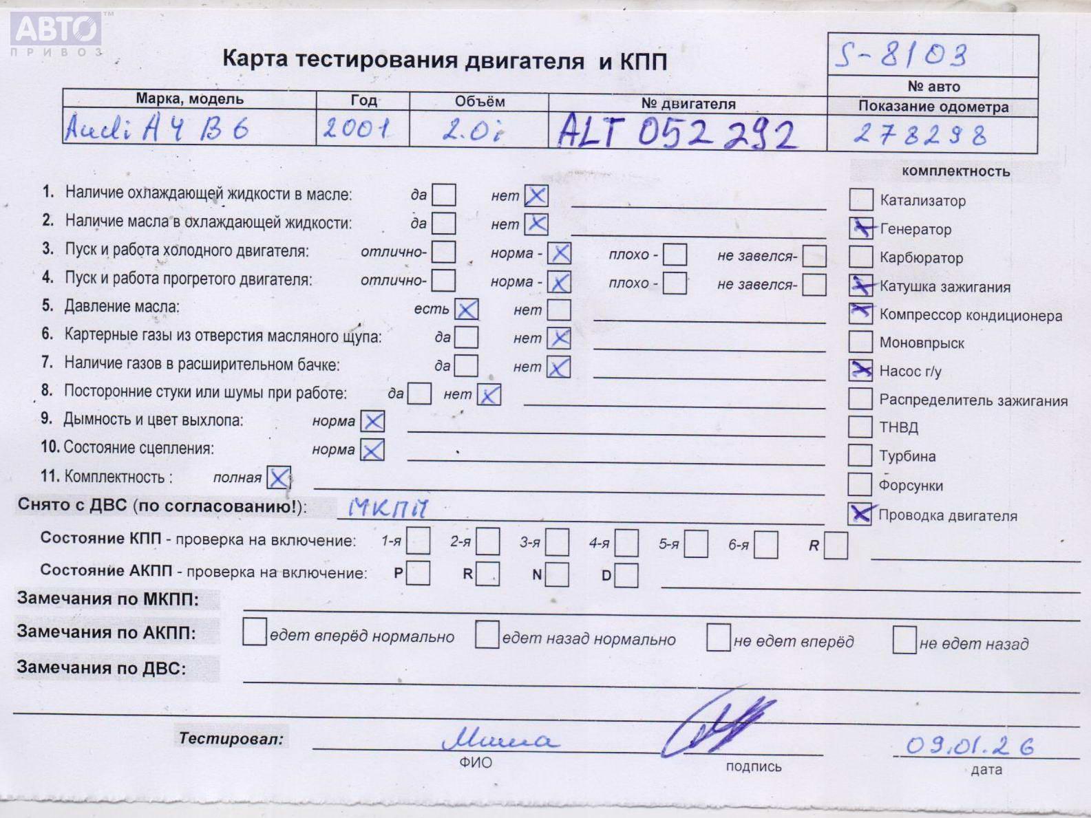 | Автомобиль / VIN: | S8103 WAUZZZ8E72A082031 |