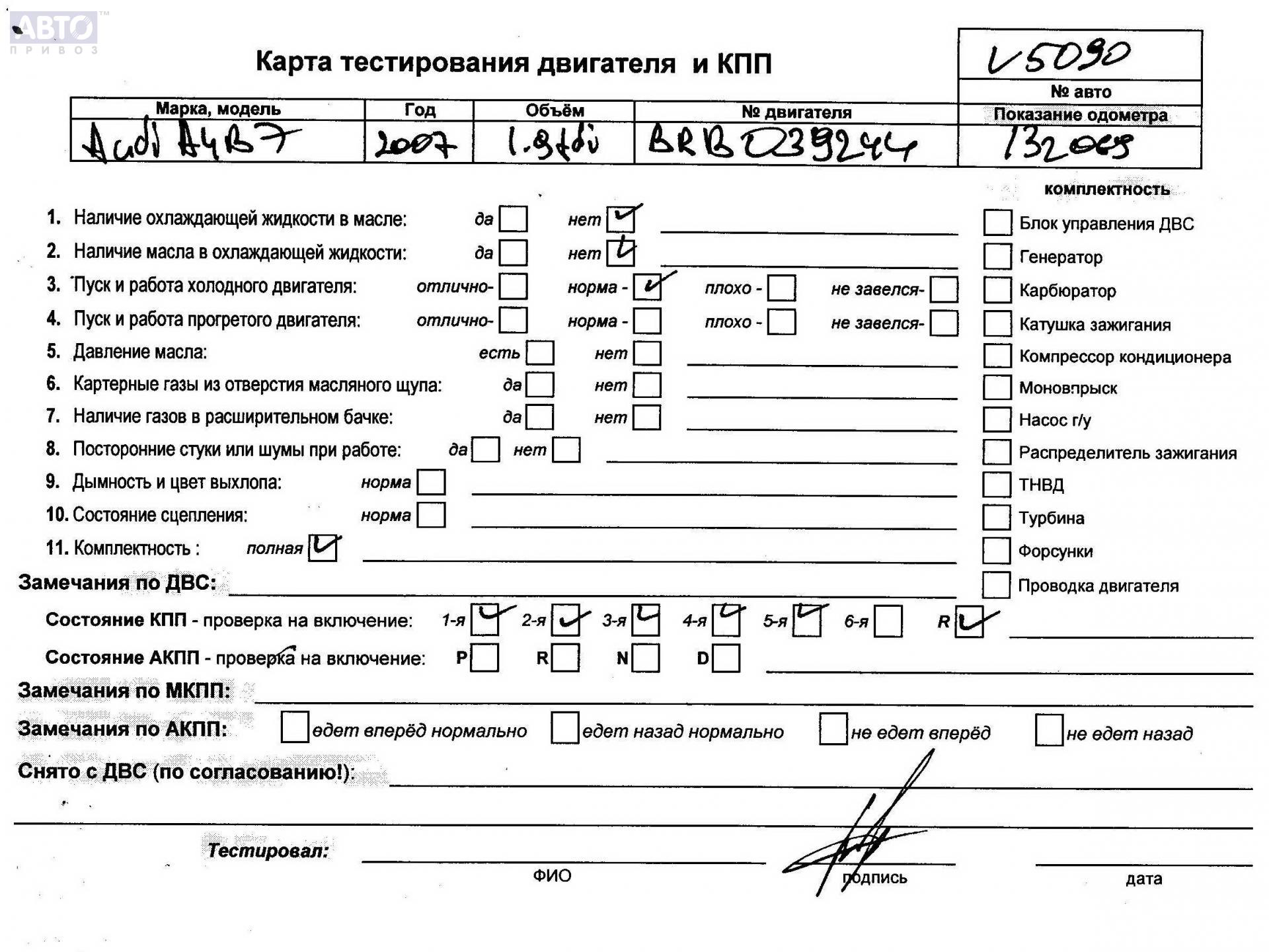 | Автомобиль / VIN: | V5090 WAUZZZ8E47A188556 |