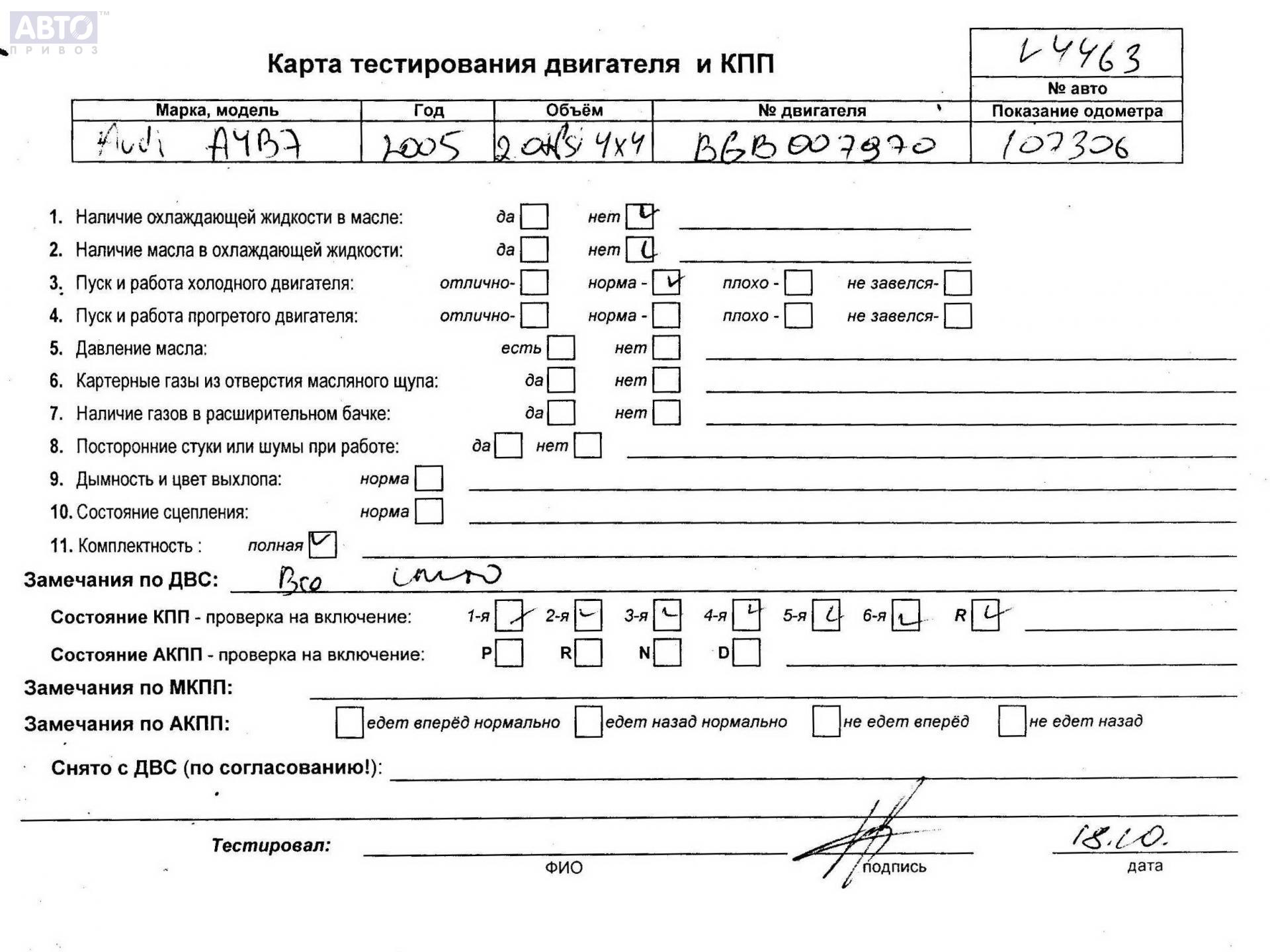 | Автомобиль / VIN: | V4463 WAUZZZ8E45A501022 |