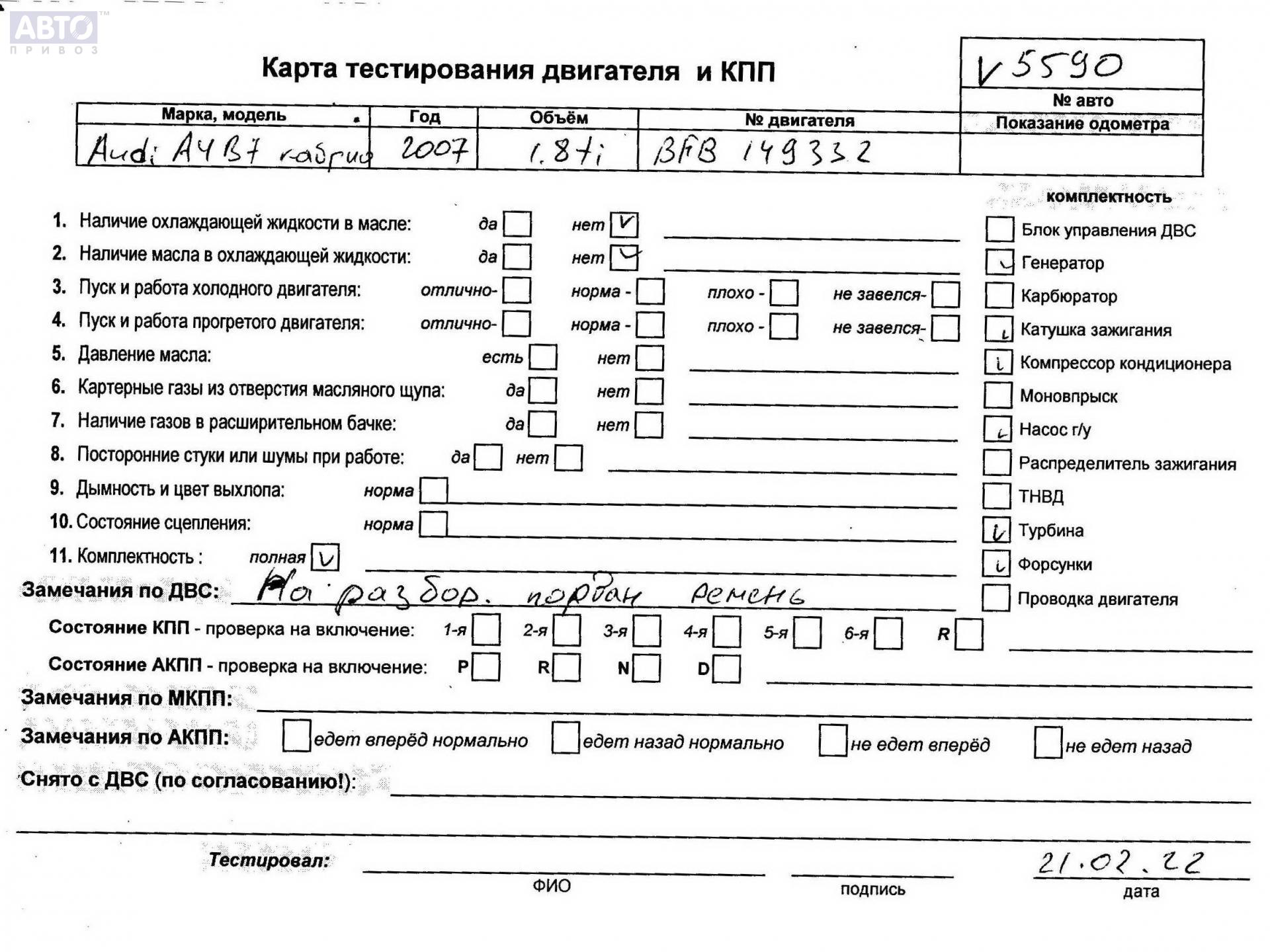 | Автомобиль / VIN: | V5590 WAUZZZ8H57K031154 |