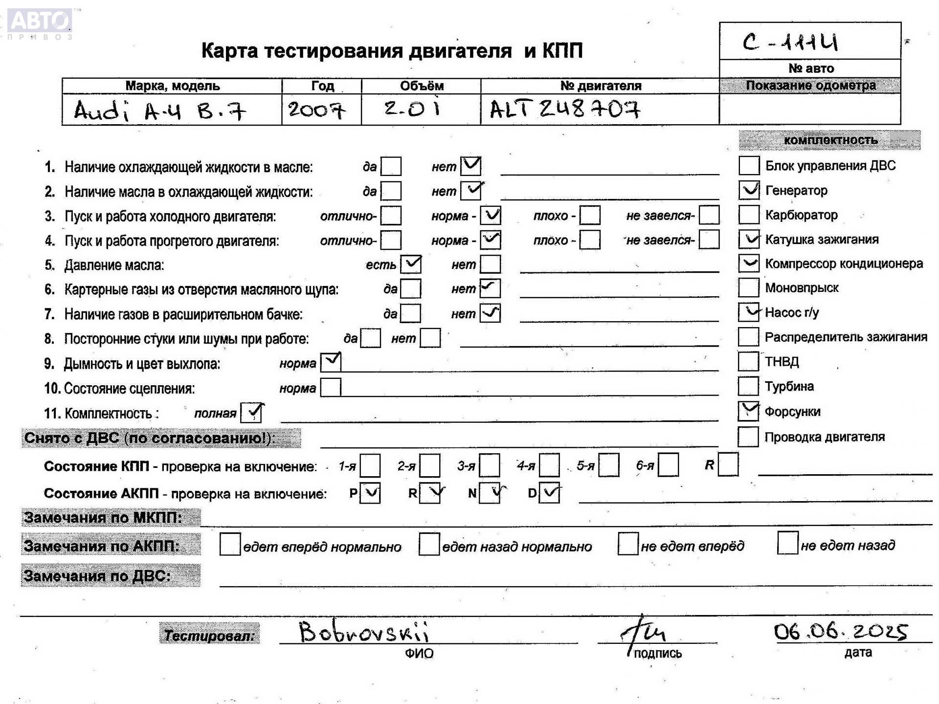 | Автомобиль / VIN: | C1114 WAUZZZ8E37A067582 |