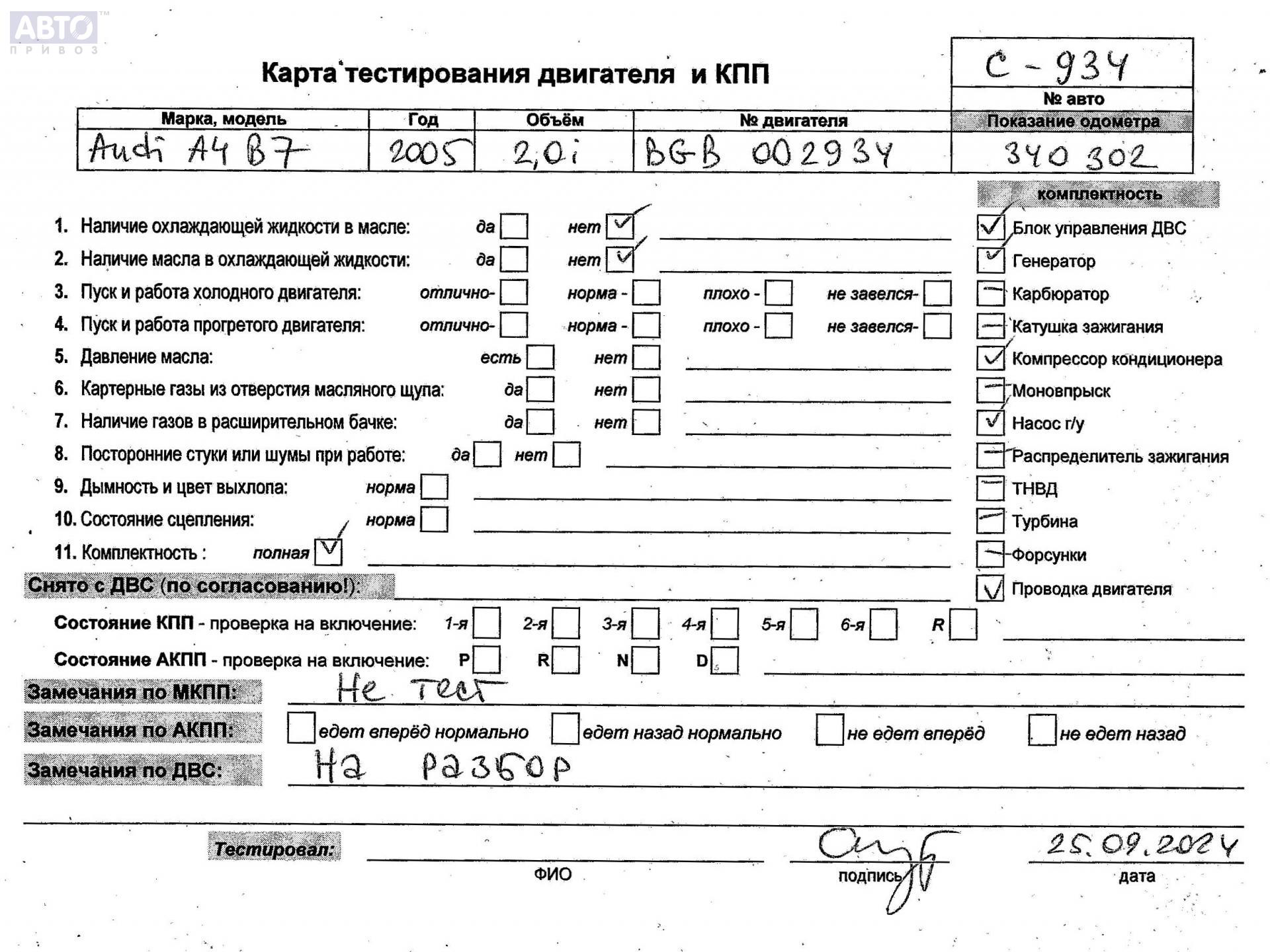 | Марка / Модель / Год: | Audi A4 B7 (2004-2008) 2005 |