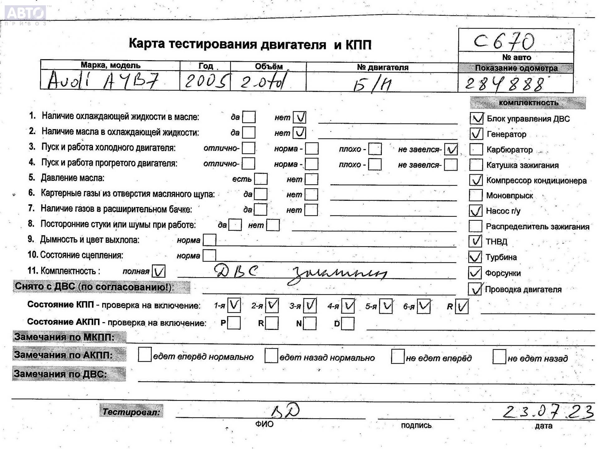 | Автомобиль / VIN: | C0670 WAUZZZ8E55A507654 |