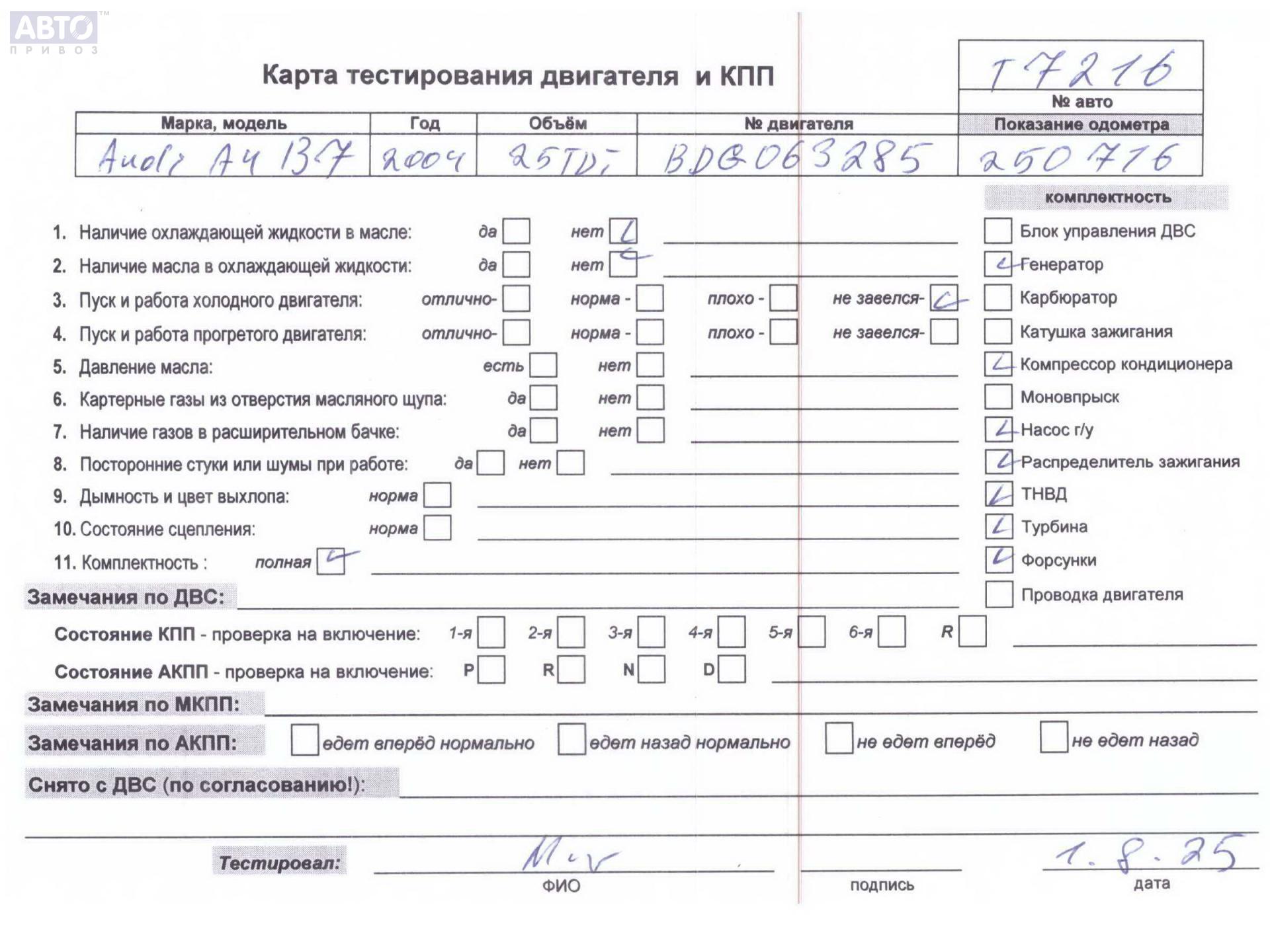 | Автомобиль / VIN: | T7216 WAUZZZ8E25A511158 |