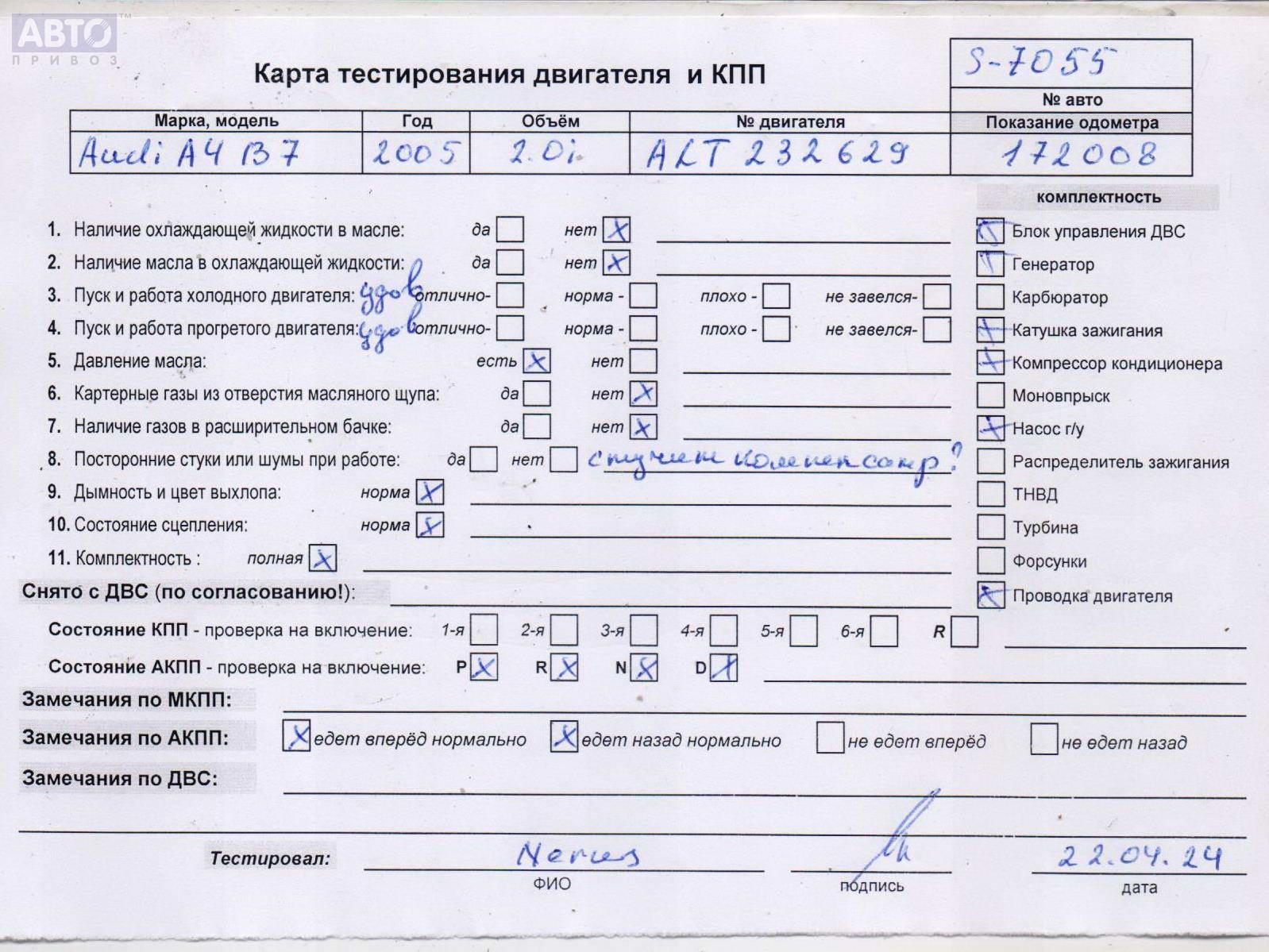 | Автомобиль / VIN: | S7055 WAUZZZ8E86A158684 |