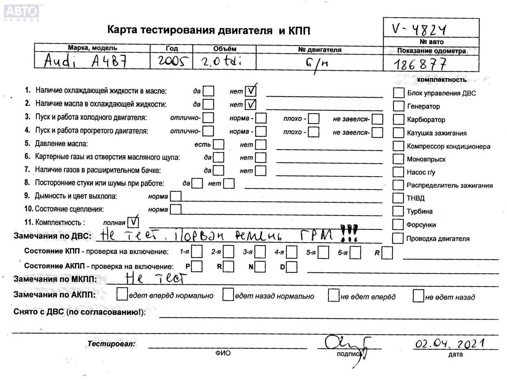 | Марка / Модель / Год: | Audi A4 B7 (2004-2008) 2005 |
