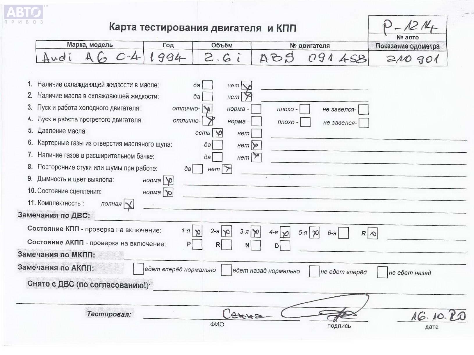 | Марка / Модель / Год: | Audi A6 C4 (1994-1997) 1994 |