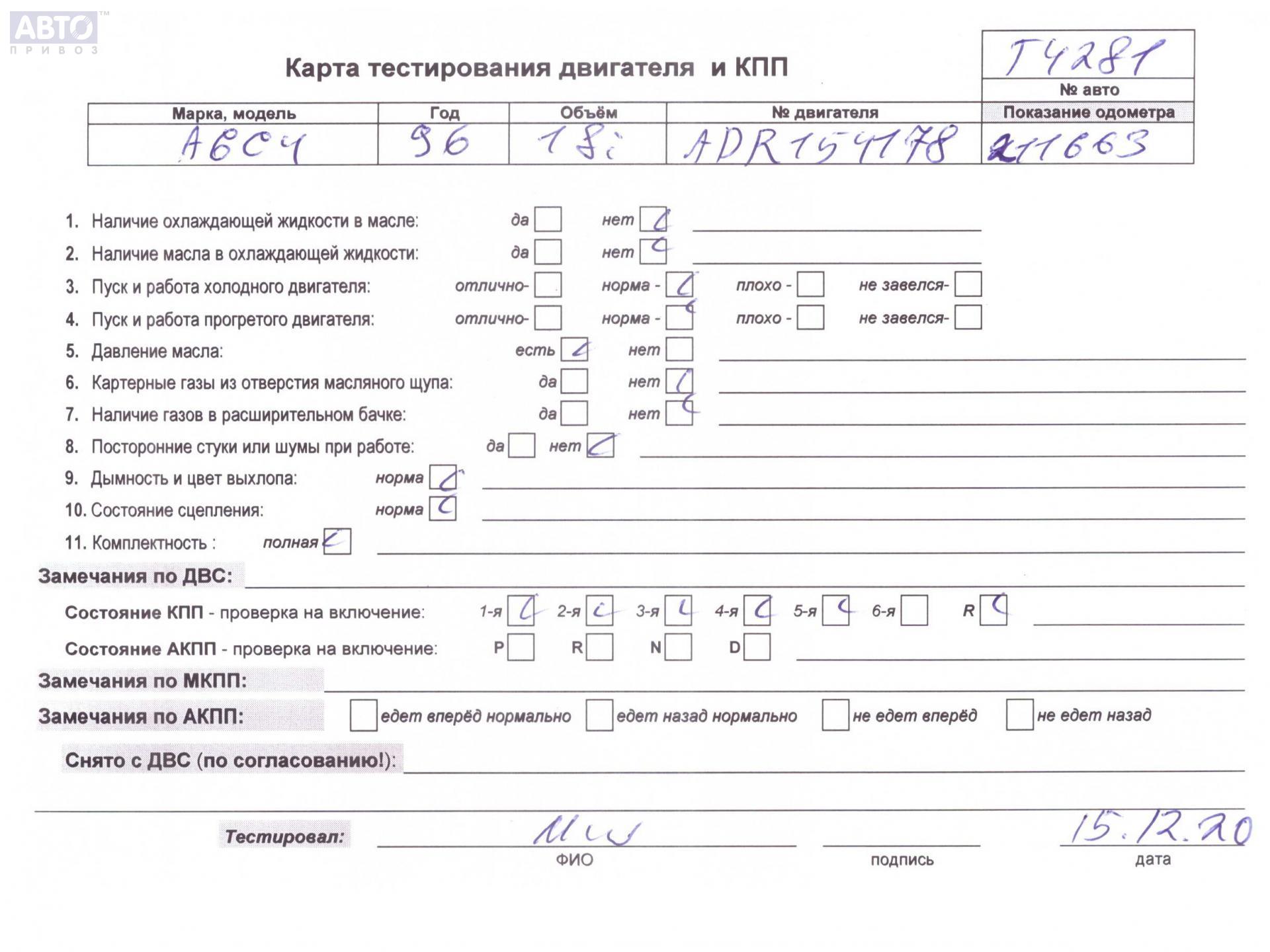 | Марка / Модель / Год: | Audi A6 C4 (1994-1997) 1996 |
