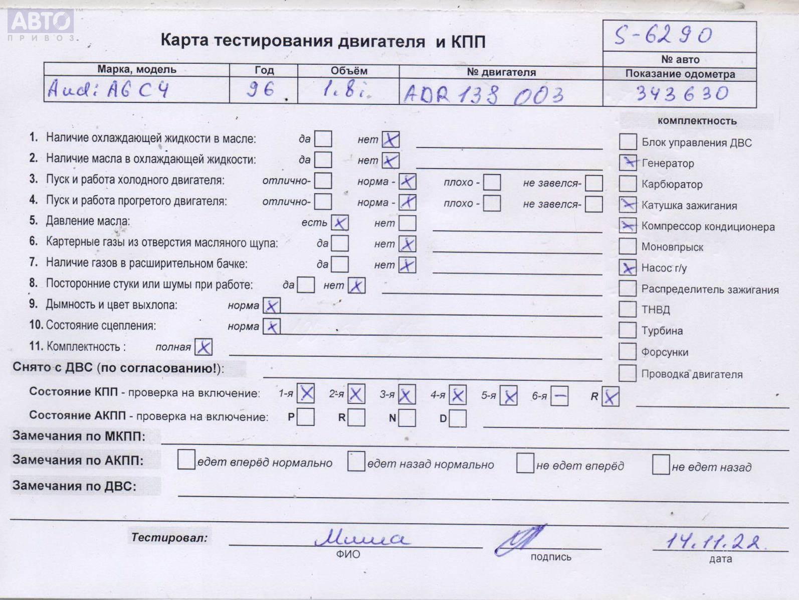 | Марка / Модель / Год: | Audi A6 C4 (1994-1997) 1996 |