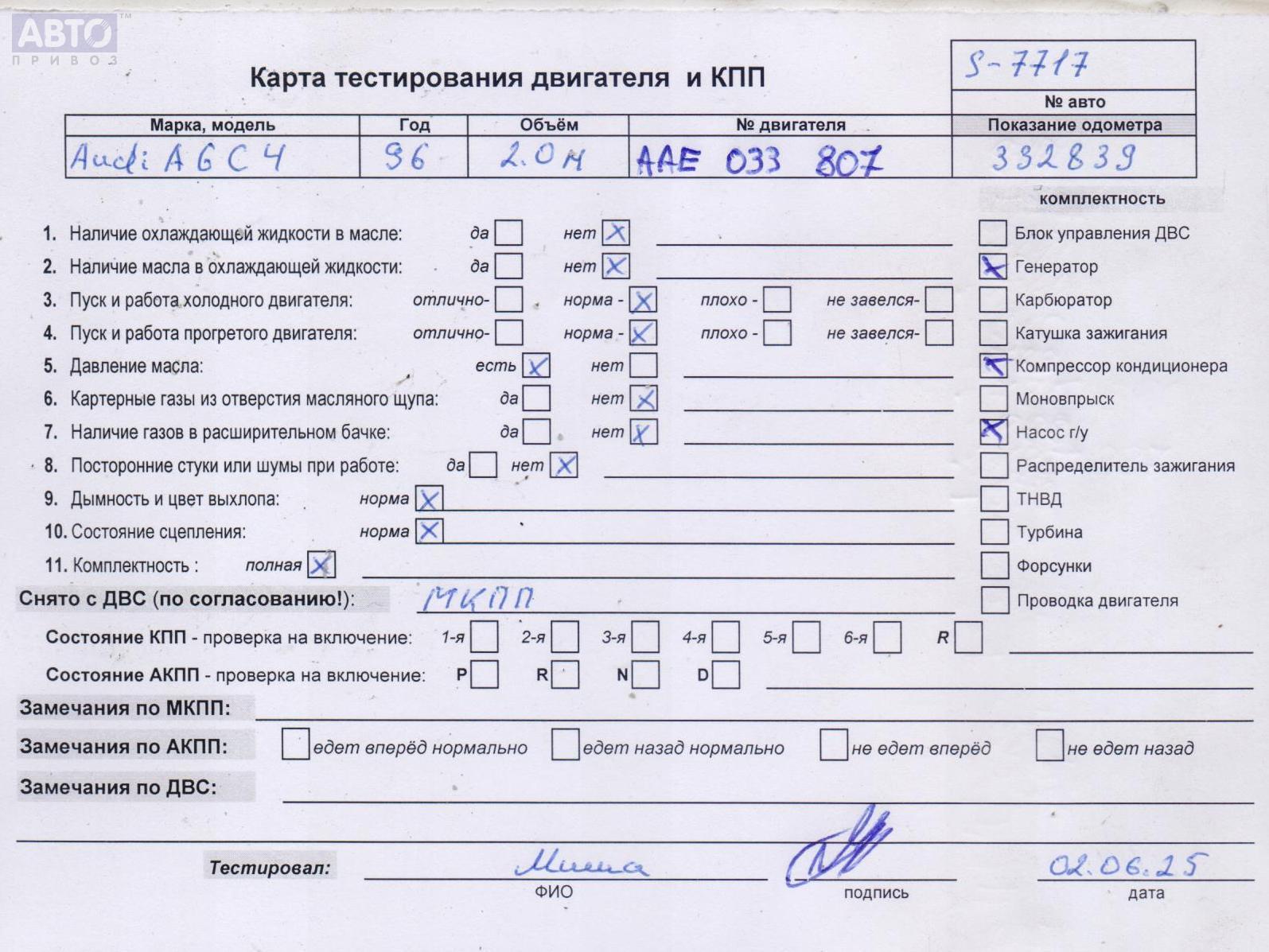 | Марка / Модель / Год: | Audi A6 C4 (1994-1997) 1996 |