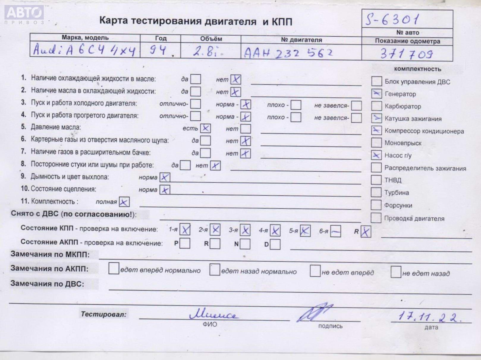 | Марка / Модель / Год: | Audi A6 C4 (1994-1997) 1994 |