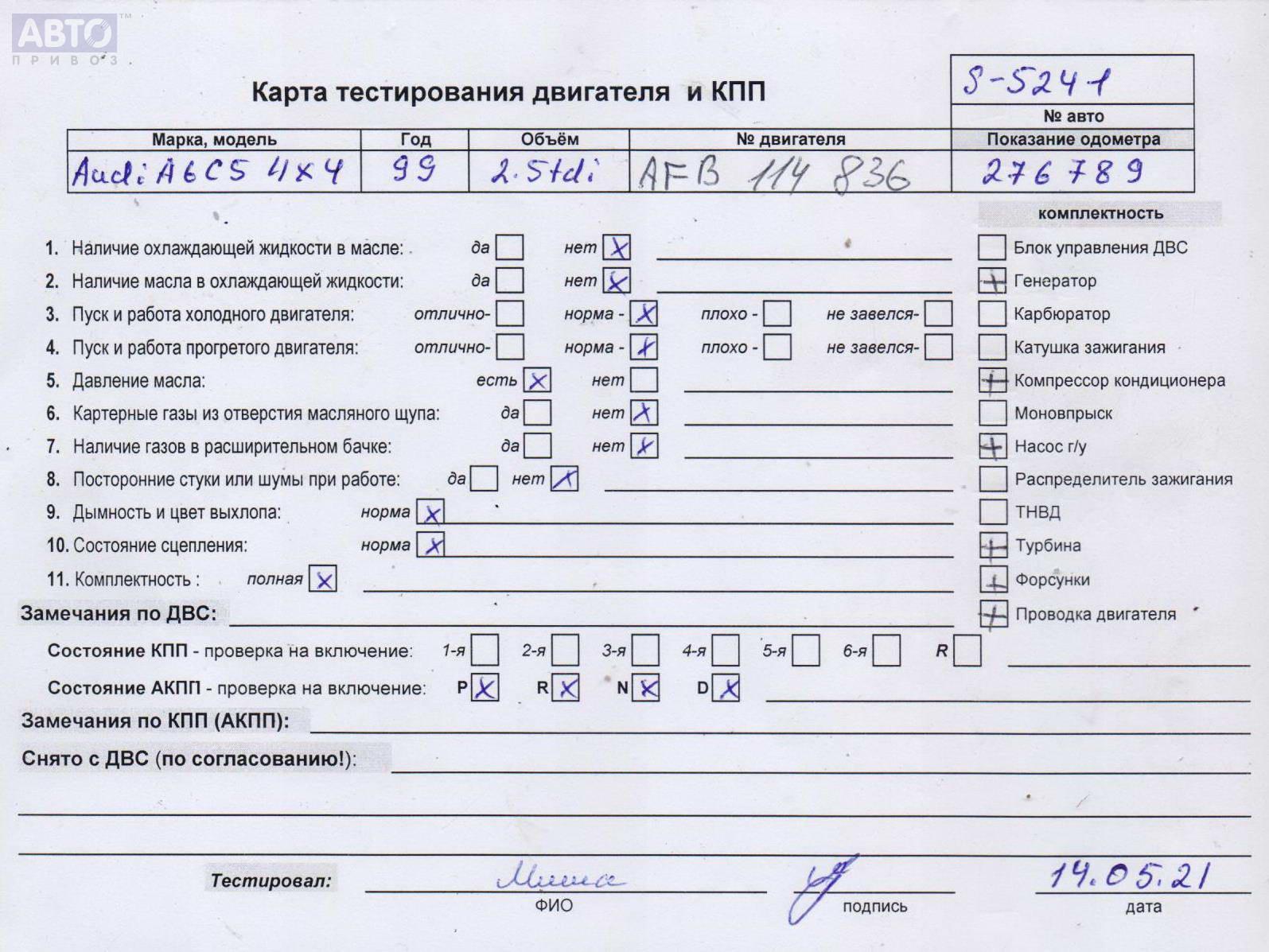 | Марка / Модель / Год: | Audi A6 C5 (1997-2005) 1999 |