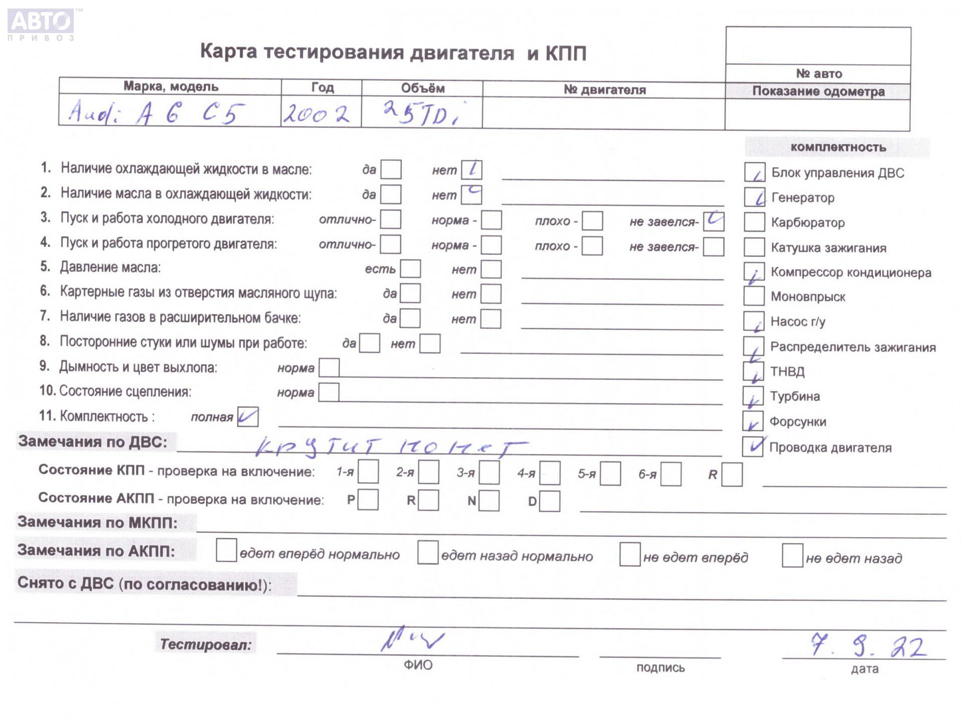 | Марка / Модель / Год: | Audi A6 C5 (1997-2005) 2003 |