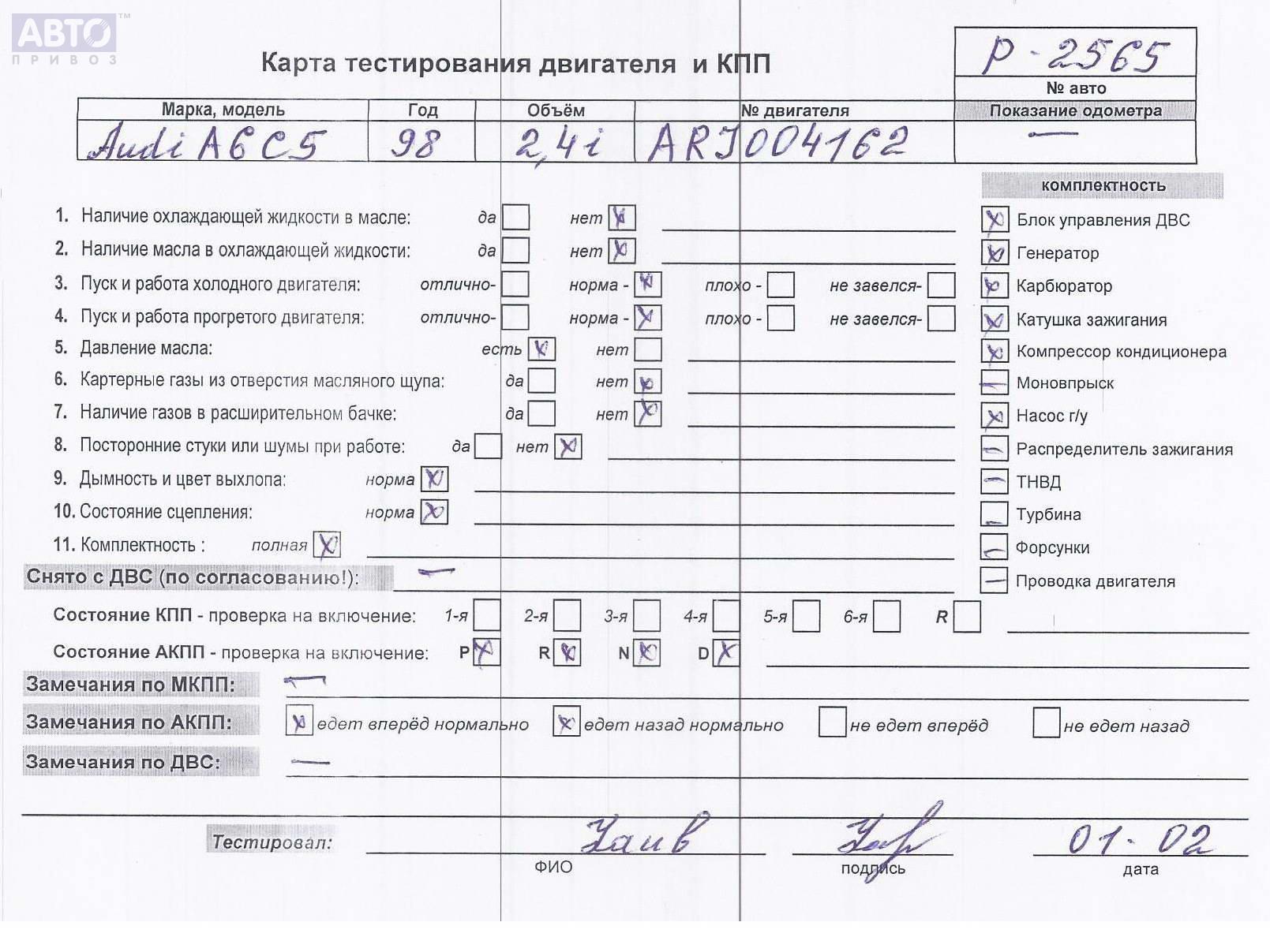 | Марка / Модель / Год: | Audi A6 C5 (1997-2005) 1999 |