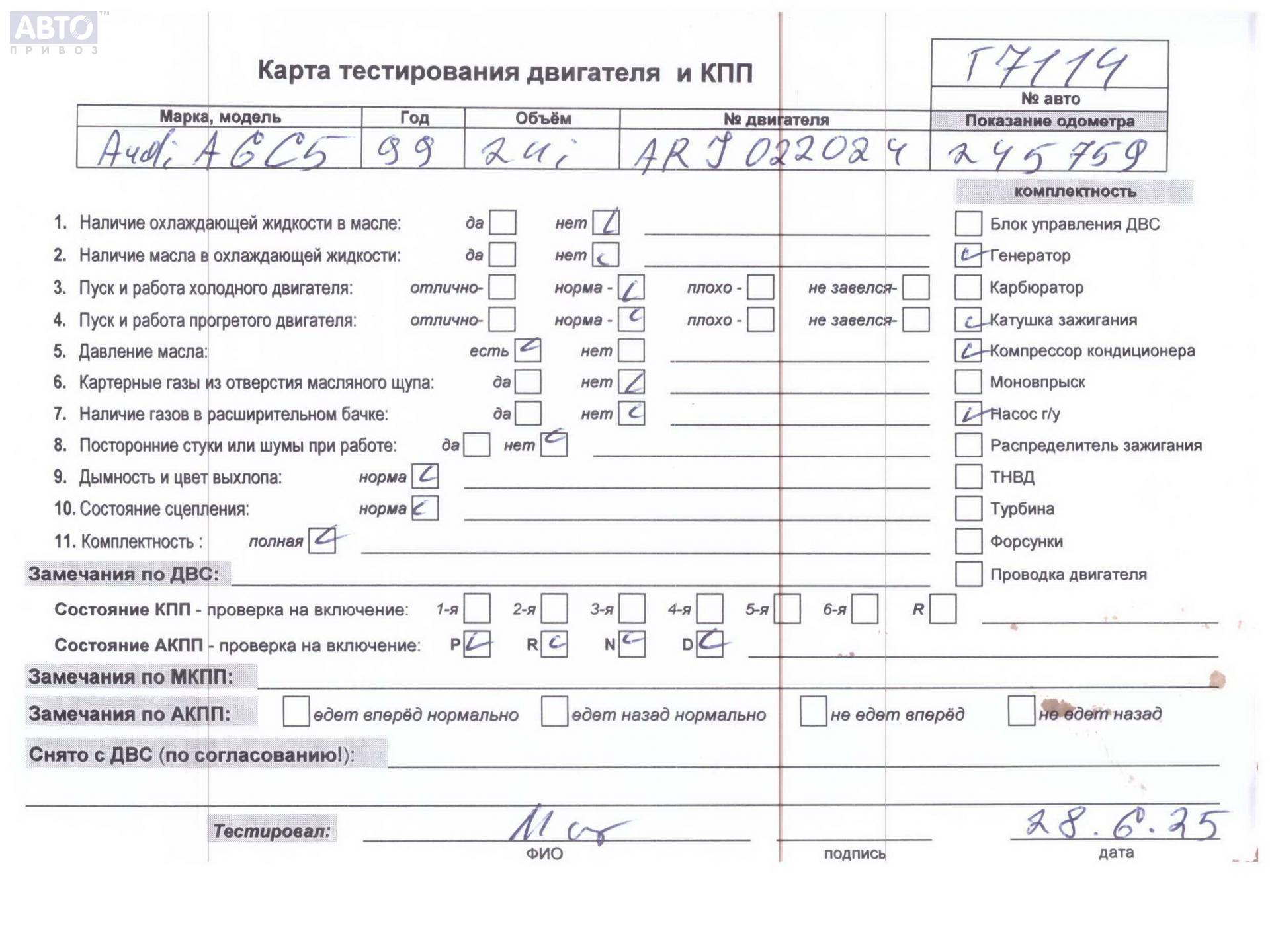 | Марка / Модель / Год: | Audi A6 C5 (1997-2005) 1999 |