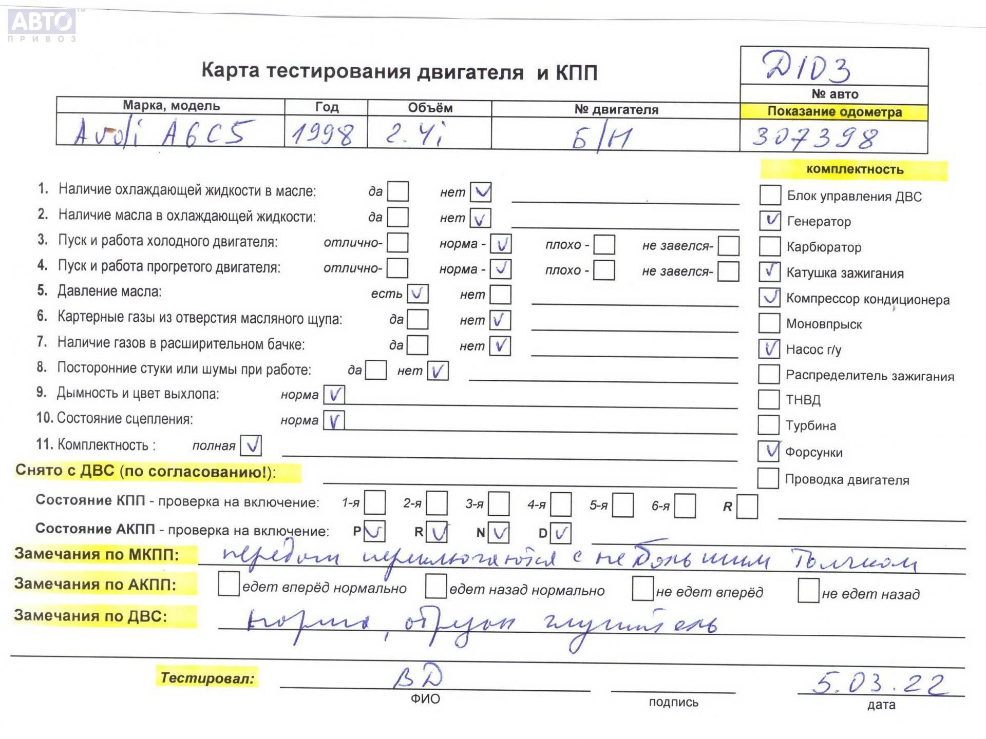 | Марка / Модель / Год: | Audi A6 C5 (1997-2005) 1998 |