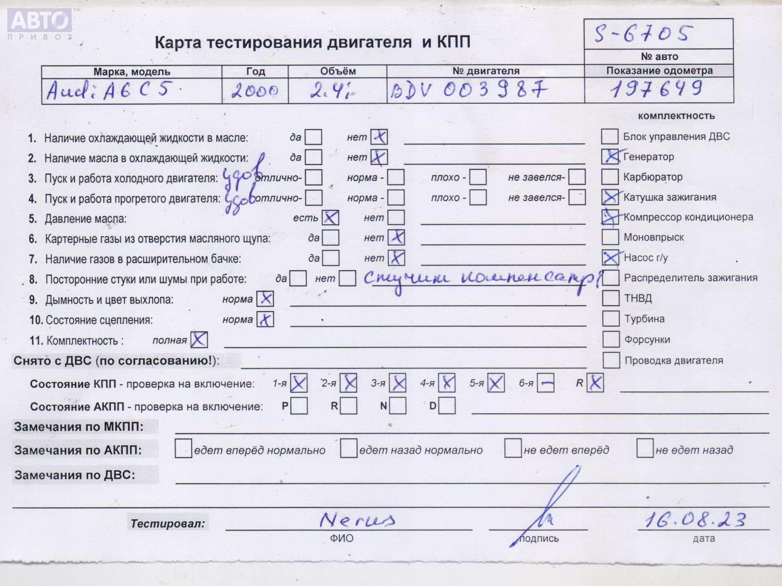 | Марка / Модель / Год: | Audi A6 C5 (1997-2005) 2002 |