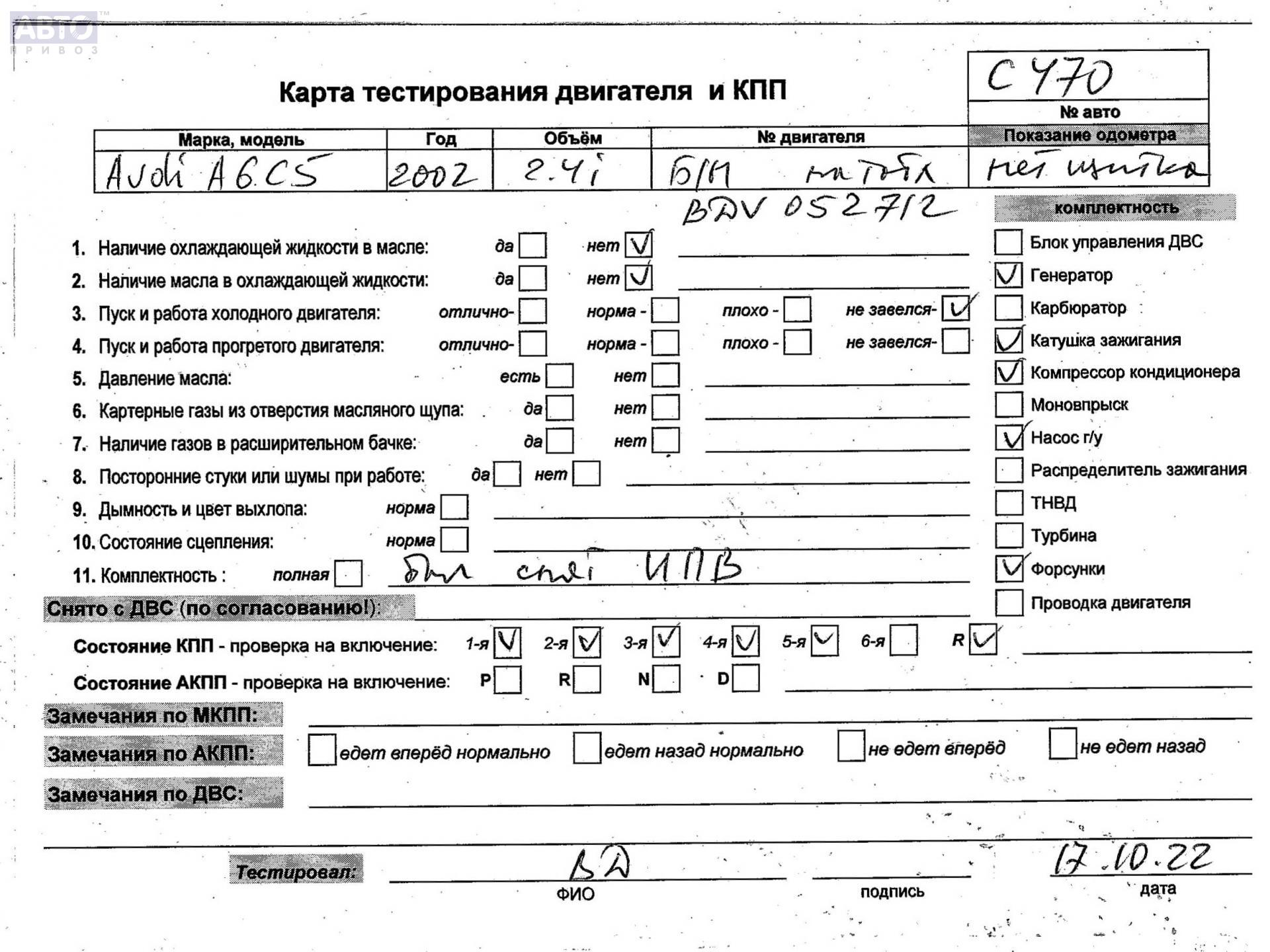 | Марка / Модель / Год: | Audi A6 C5 (1997-2005) 2002 |