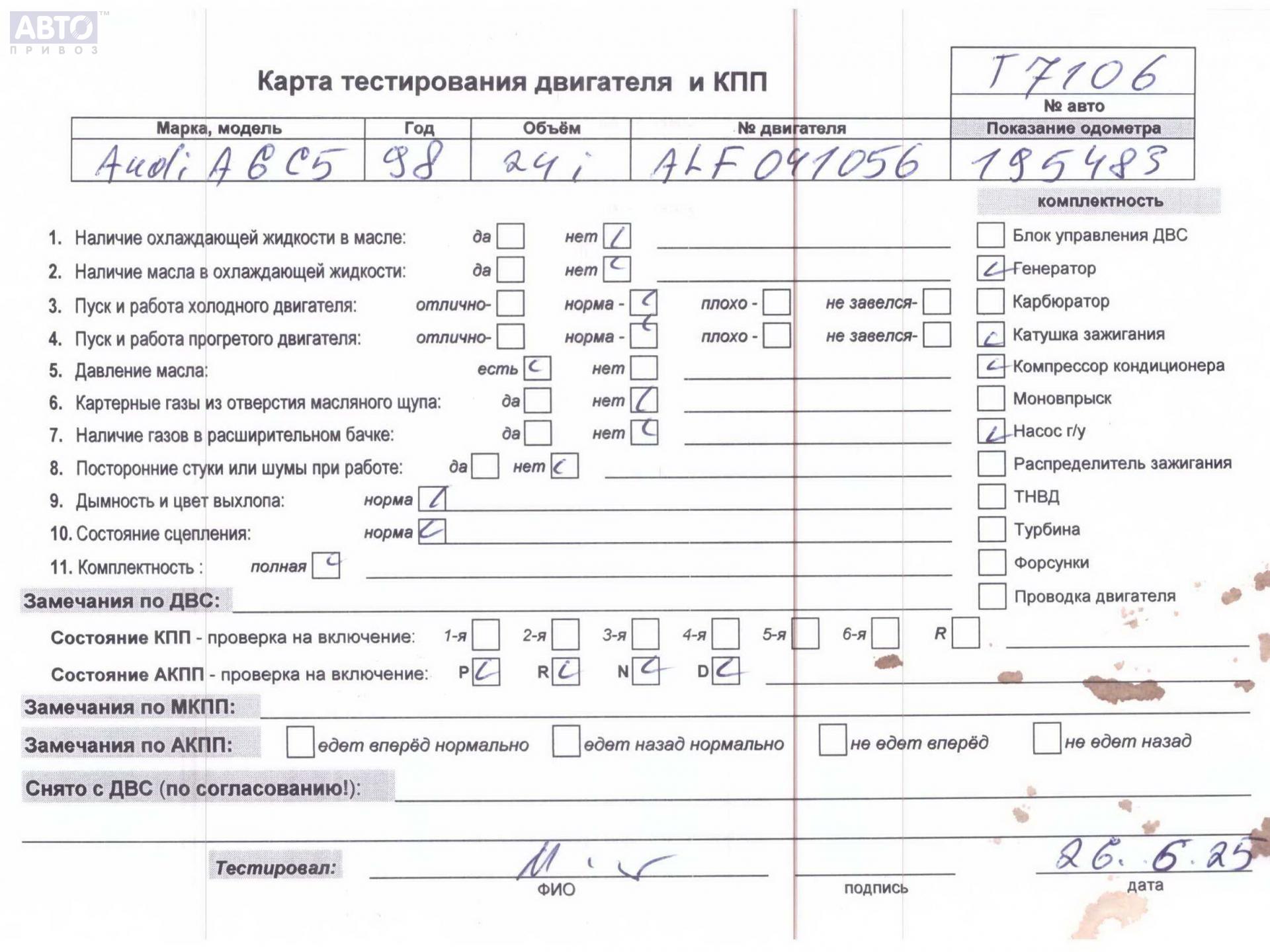 | Марка / Модель / Год: | Audi A6 C5 (1997-2005) 1998 |