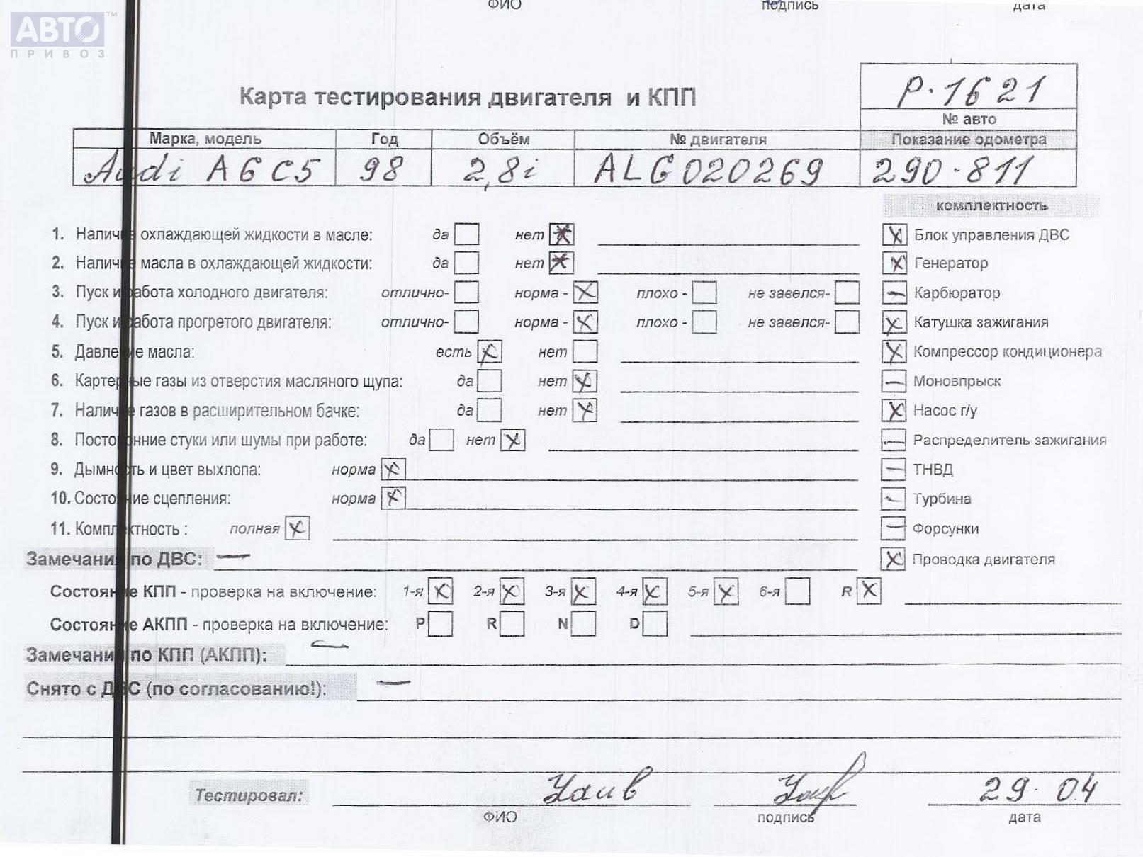 | Марка / Модель / Год: | Audi A6 C5 (1997-2005) 1998 |